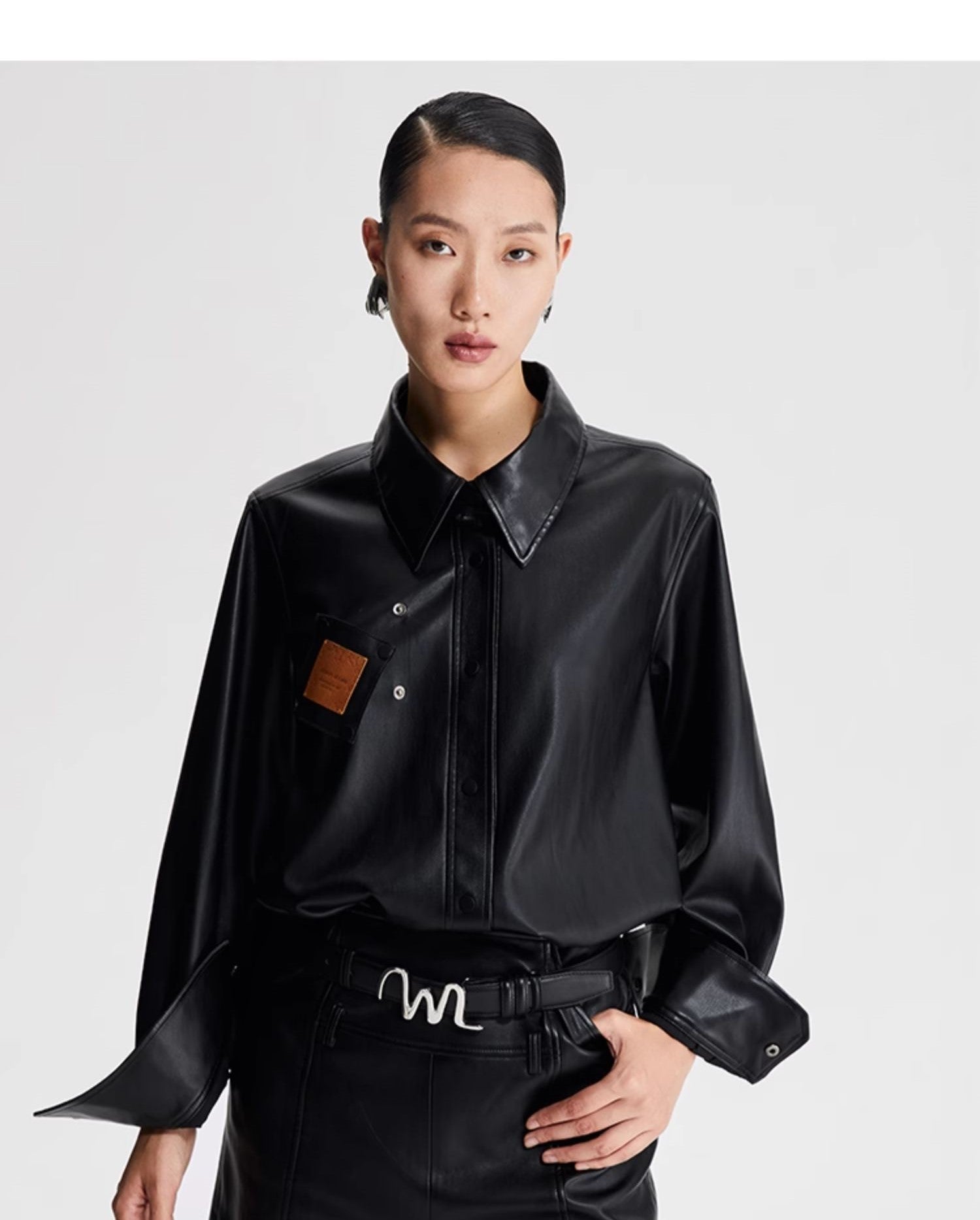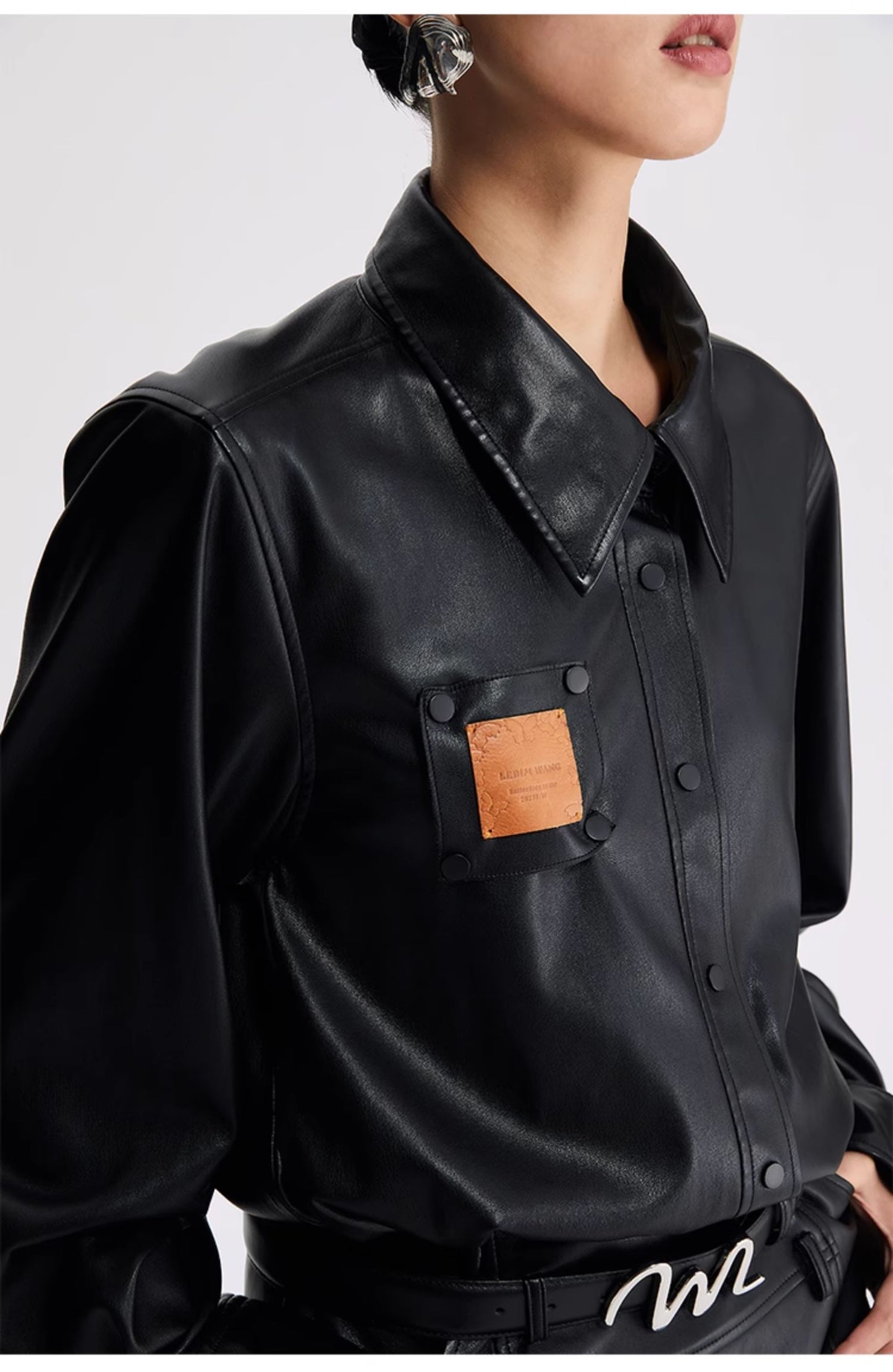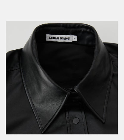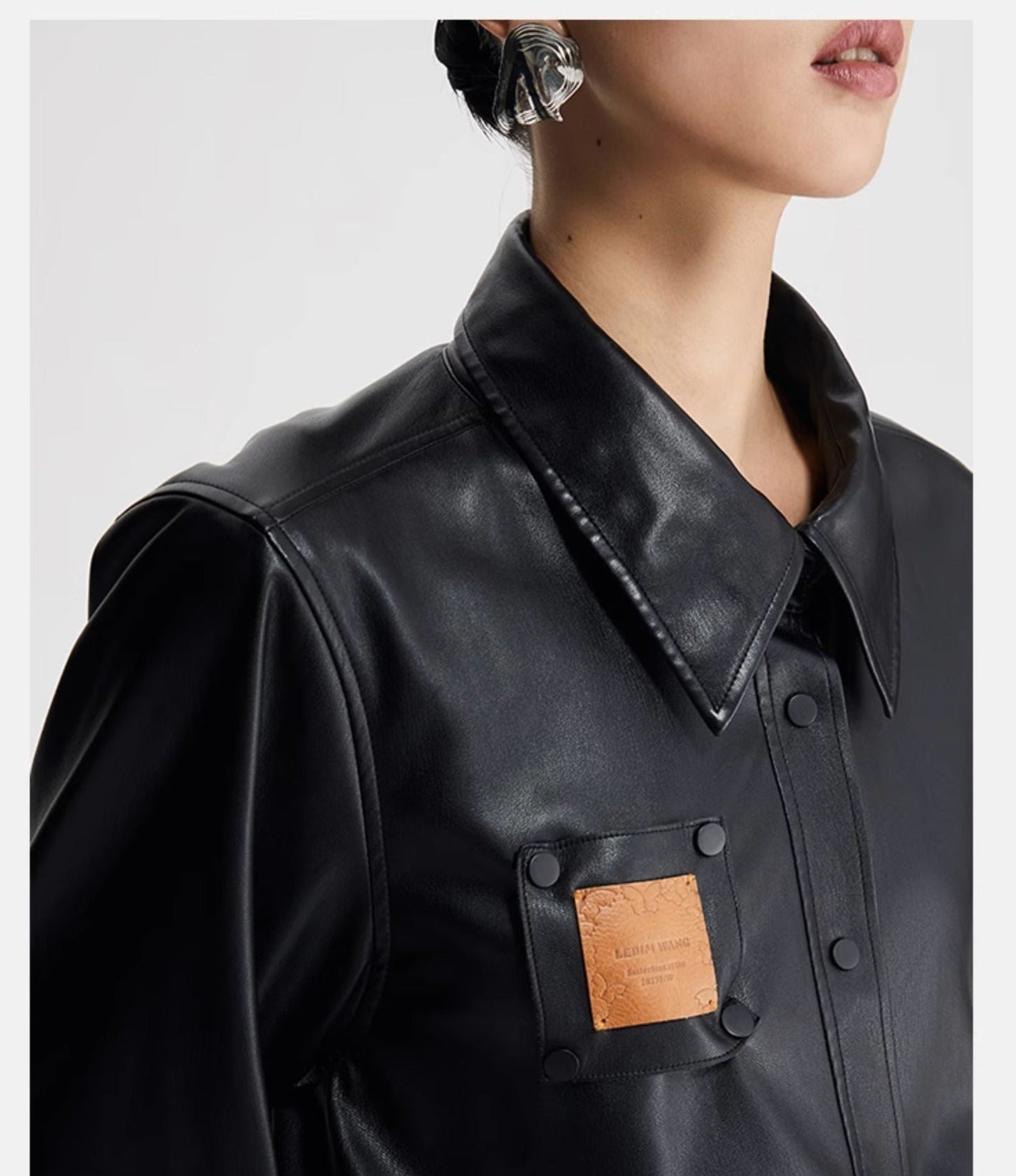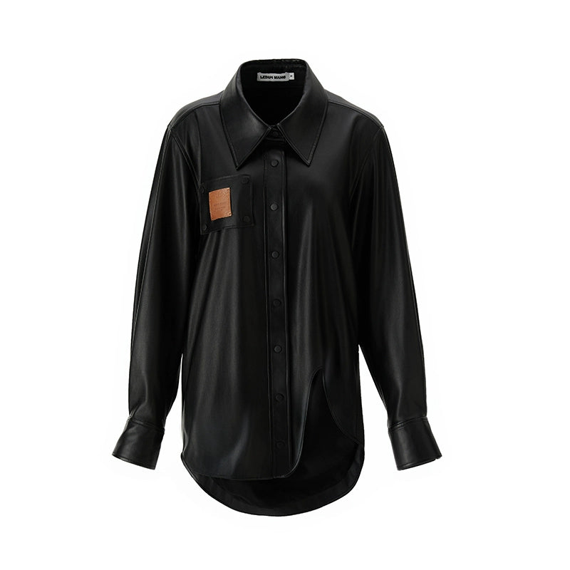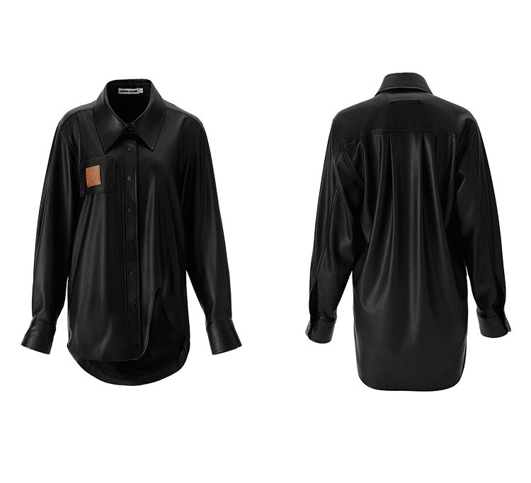 LEDIM W Autumn New Curved Corner Wide PU Leather Shirt - Iwo