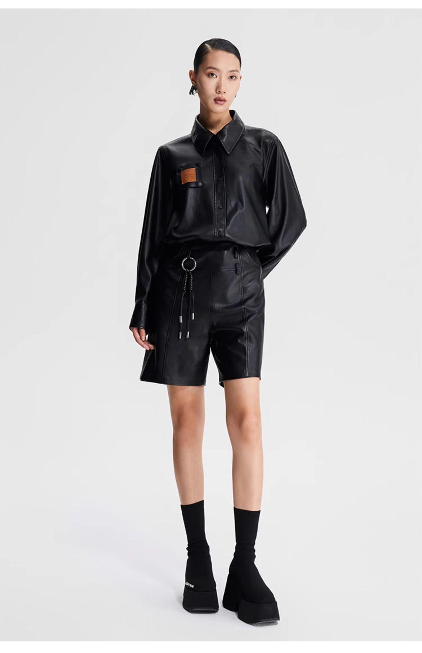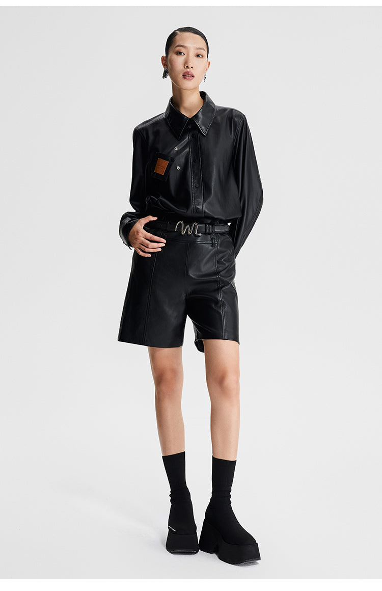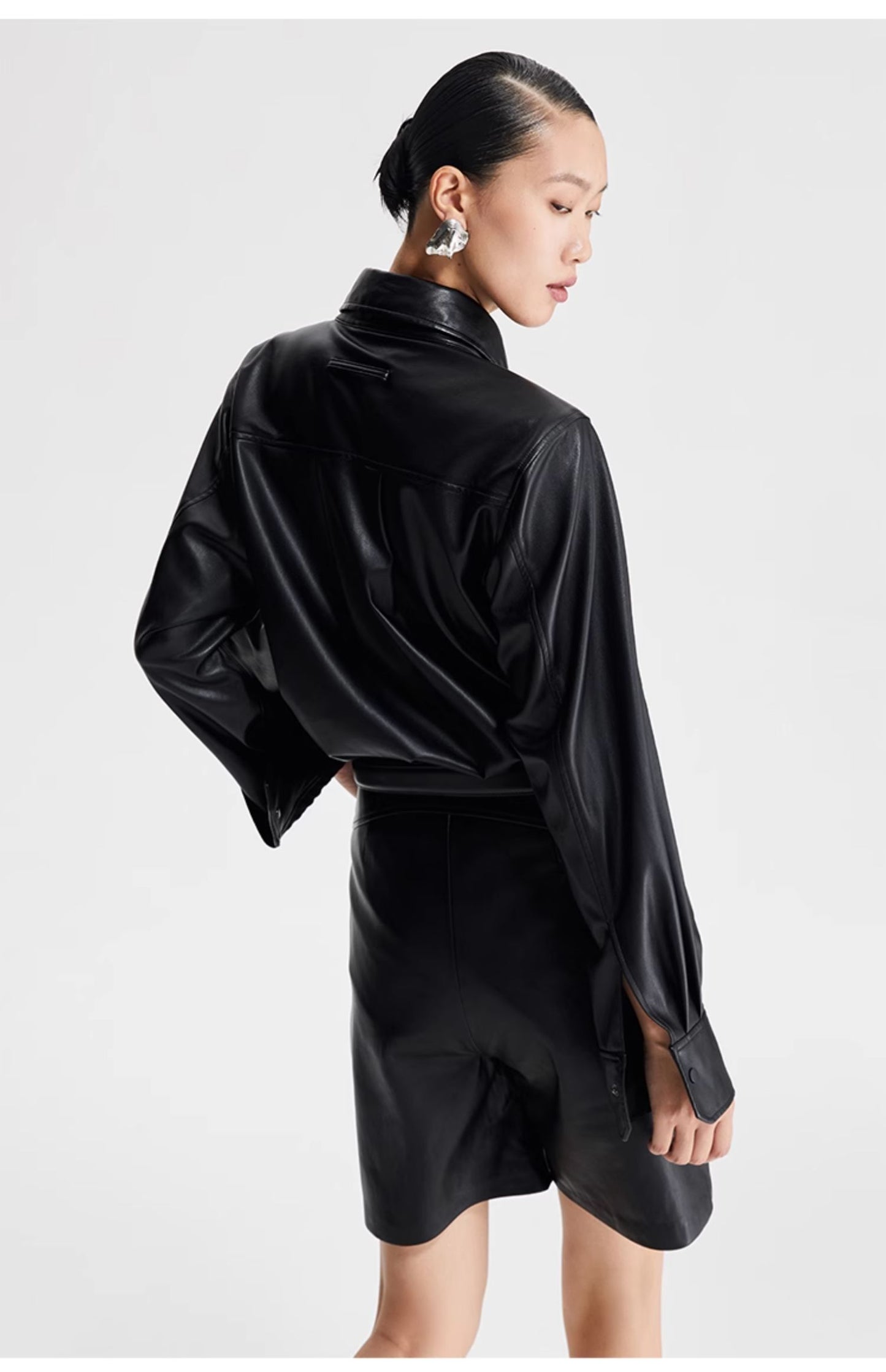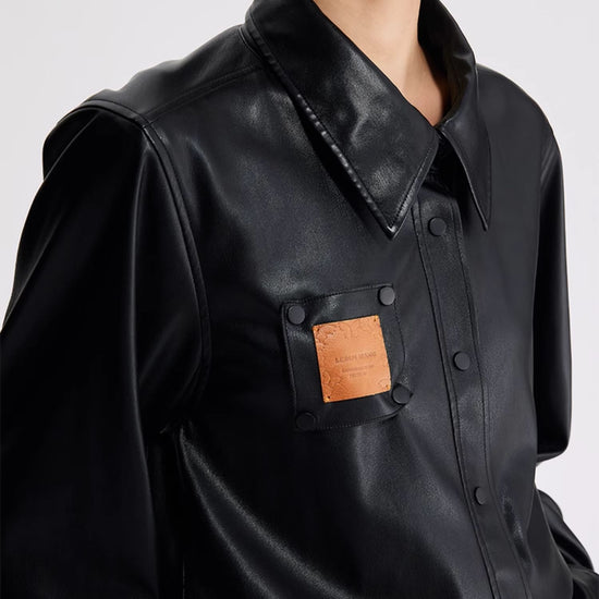 LEDIM W Autumn New Curved Corner Wide PU Leather Shirt - Iwo