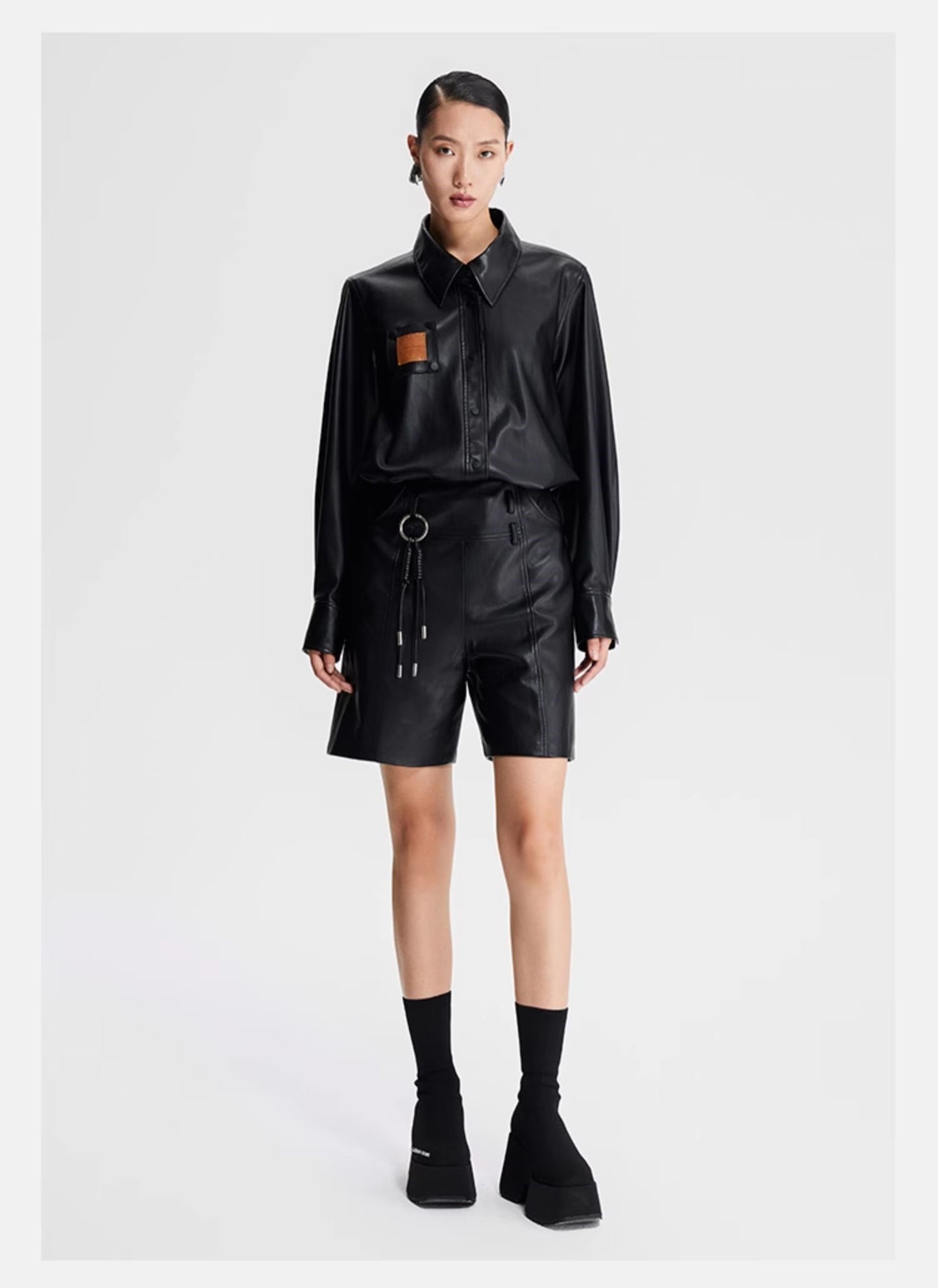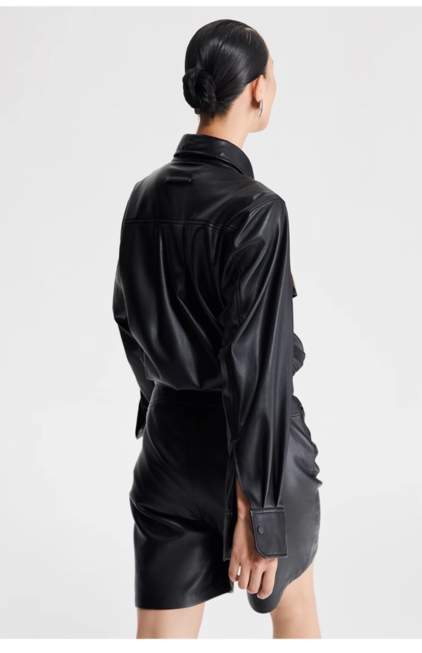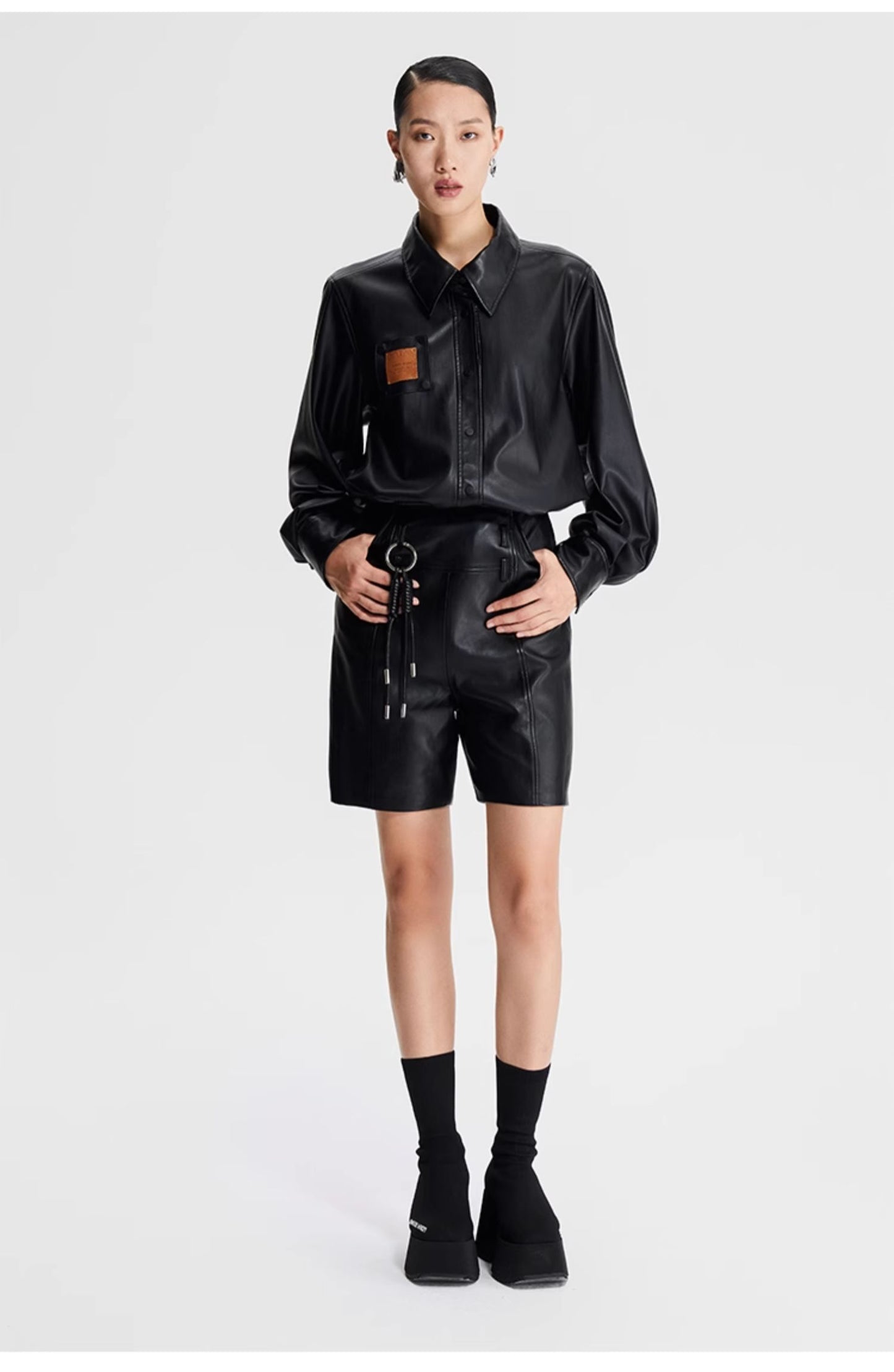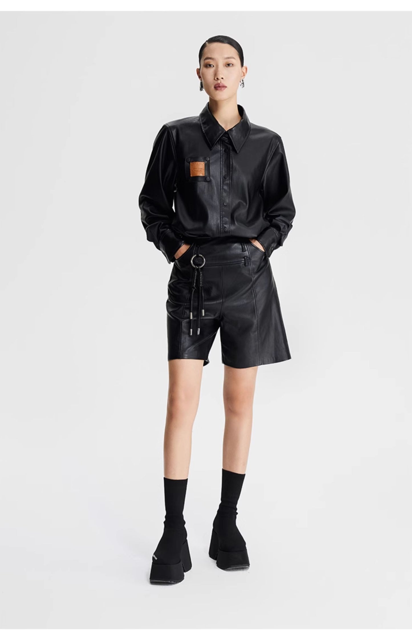 LEDIM W Autumn New Curved Corner Wide PU Leather Shirt - Iwo
