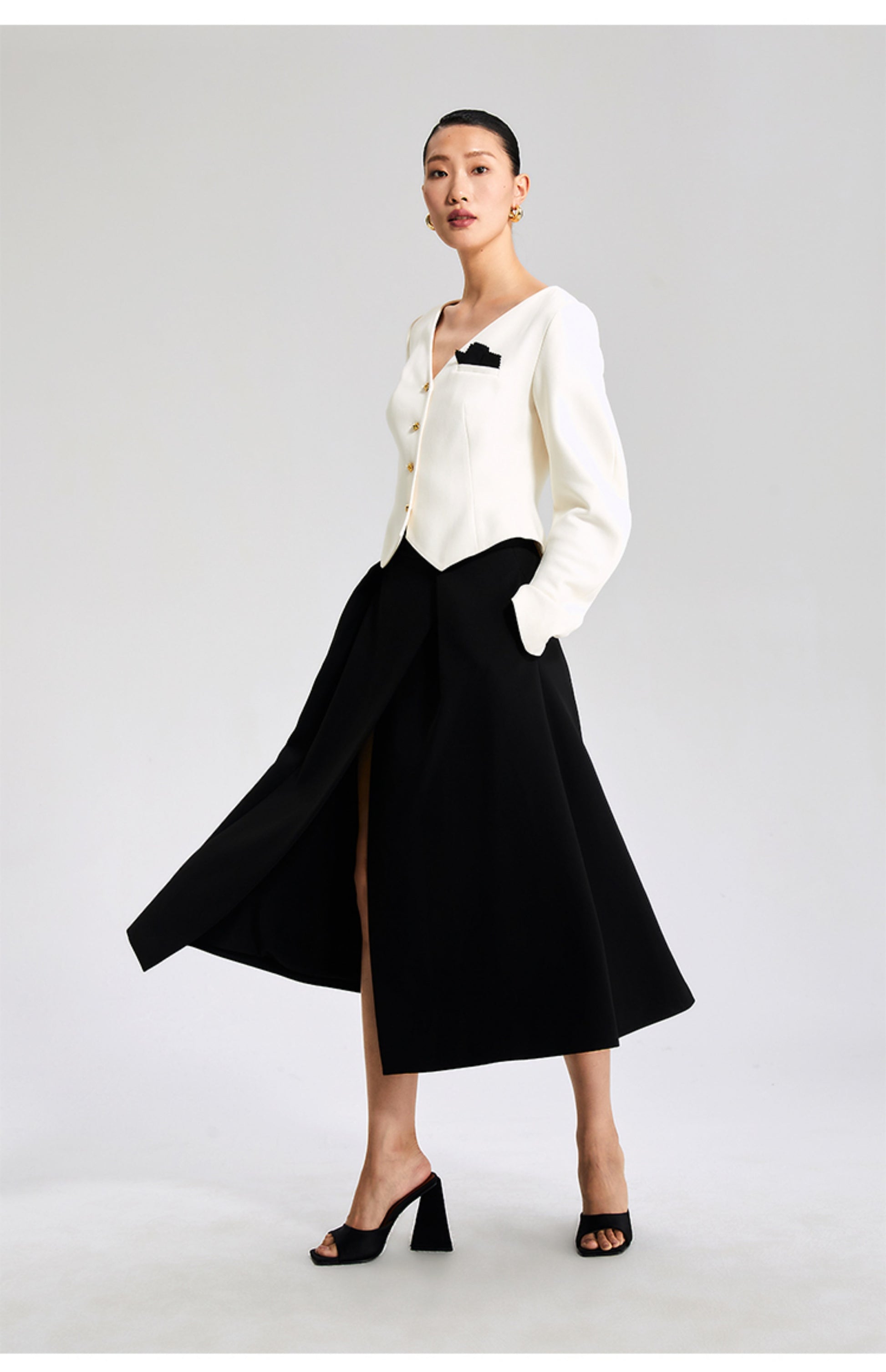 Make a timeless statement with this sophisticated pleated skirt by LEDIM W. The classic black colour of this refined skirt ensures an elegant look, while the slit adds a subtle hint of allure. Perfect for those seeking a contemporary yet timeless look.