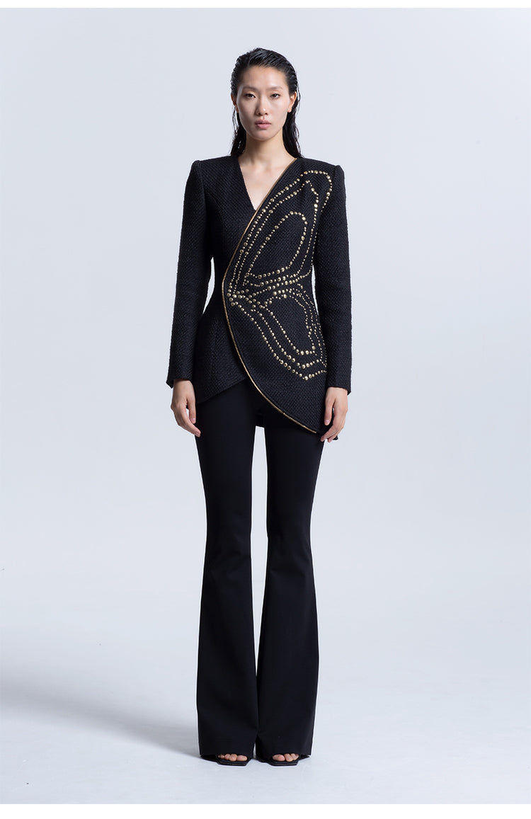 Introducing the exquisite LEDIM W Butterfly outline suit jacket blazer - a luxurious haute couture blazer crafted to capture a sublime symphony of ornate style and elegance. Let this piece of art be the statement piece of your wardrobe.