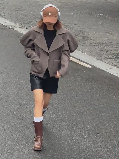 This LEDIM W CROPPED TWEED TOP FALL/WINTER TWEED SUIT is the perfect addition to your winter wardrobe. Crafted from luxurious tweed, the suit features a chic cropped cut, tailored to fit your body with an elegant and sophisticated silhouette. The unique design is dashing and stylish, making it the perfect outfit for work, office, or date. Embrace winter fashion in unparalleled style.