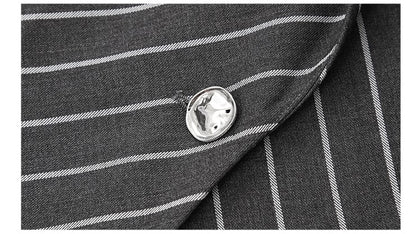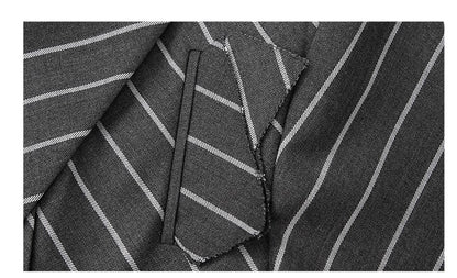 Introducing the LEDIM W highend oblique stripe t shaped gray suit jacket blazer - Pieo. Crafted from a unique striped suit fabric, this jacket is designed for fashion-forward men. It features an elegant t-shaped silhouette, and emphasizes a dashing, stylish, and classic look with its chic and sophisticated design. Perfect for formal wear and a smart, high class and luxurious look.