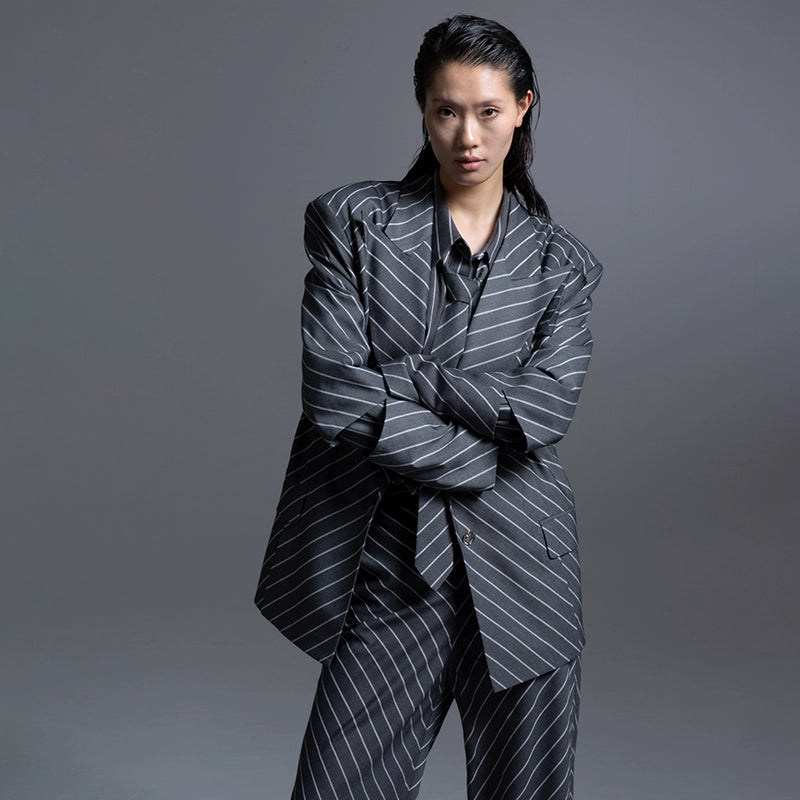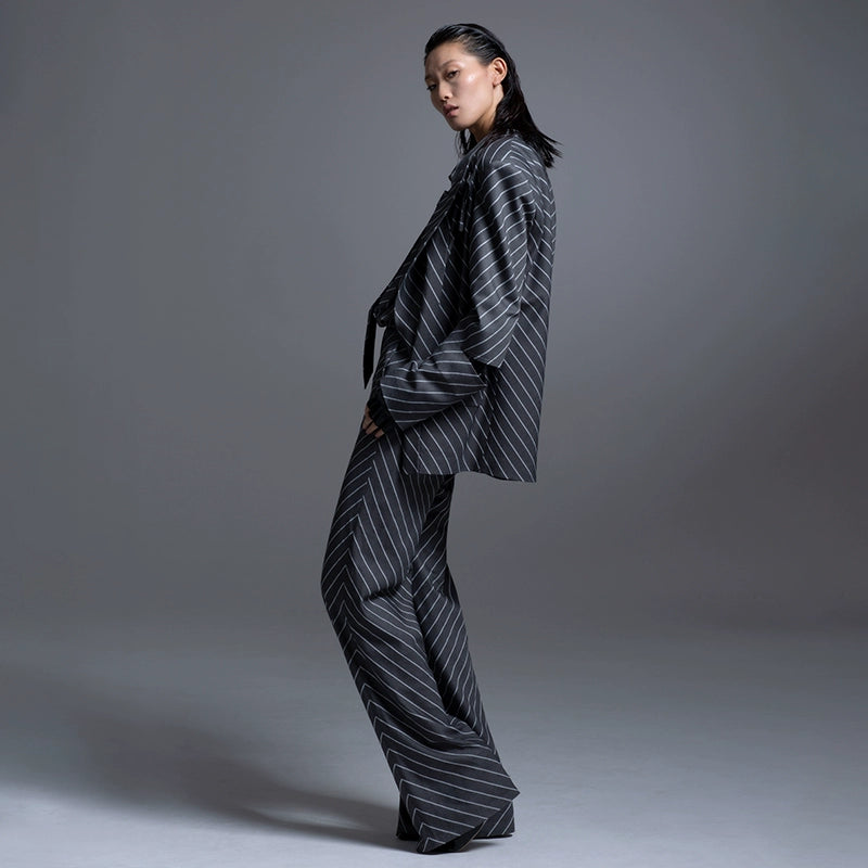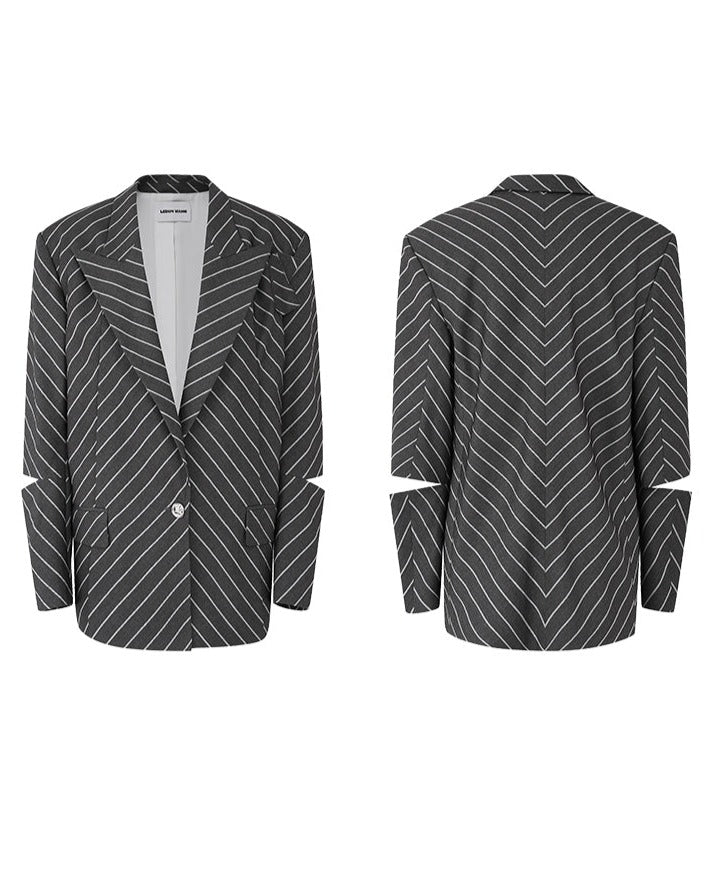 LEDIM W highend oblique stripe t shaped gray suit jacket blazer - Pieo