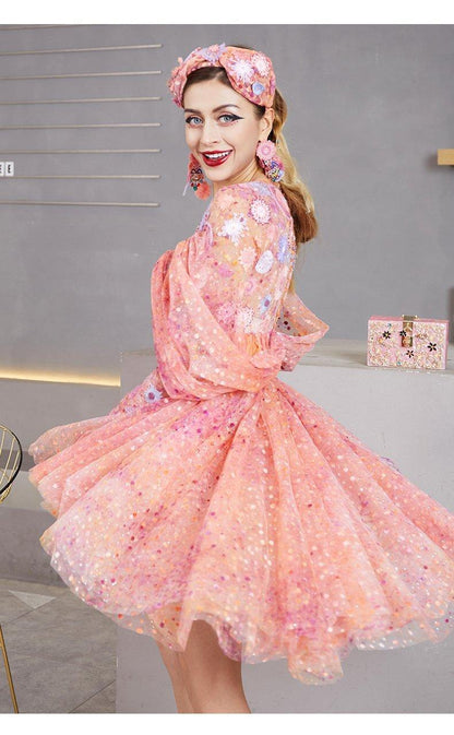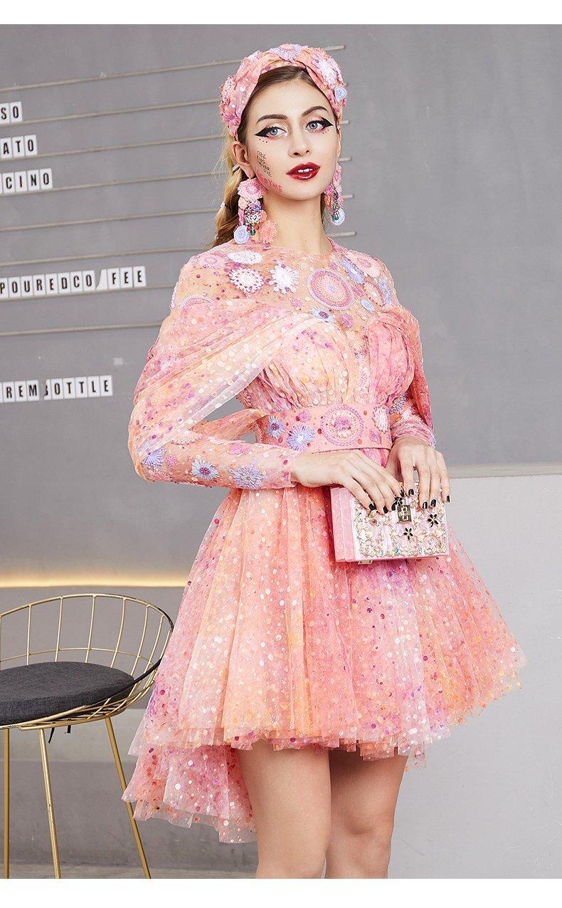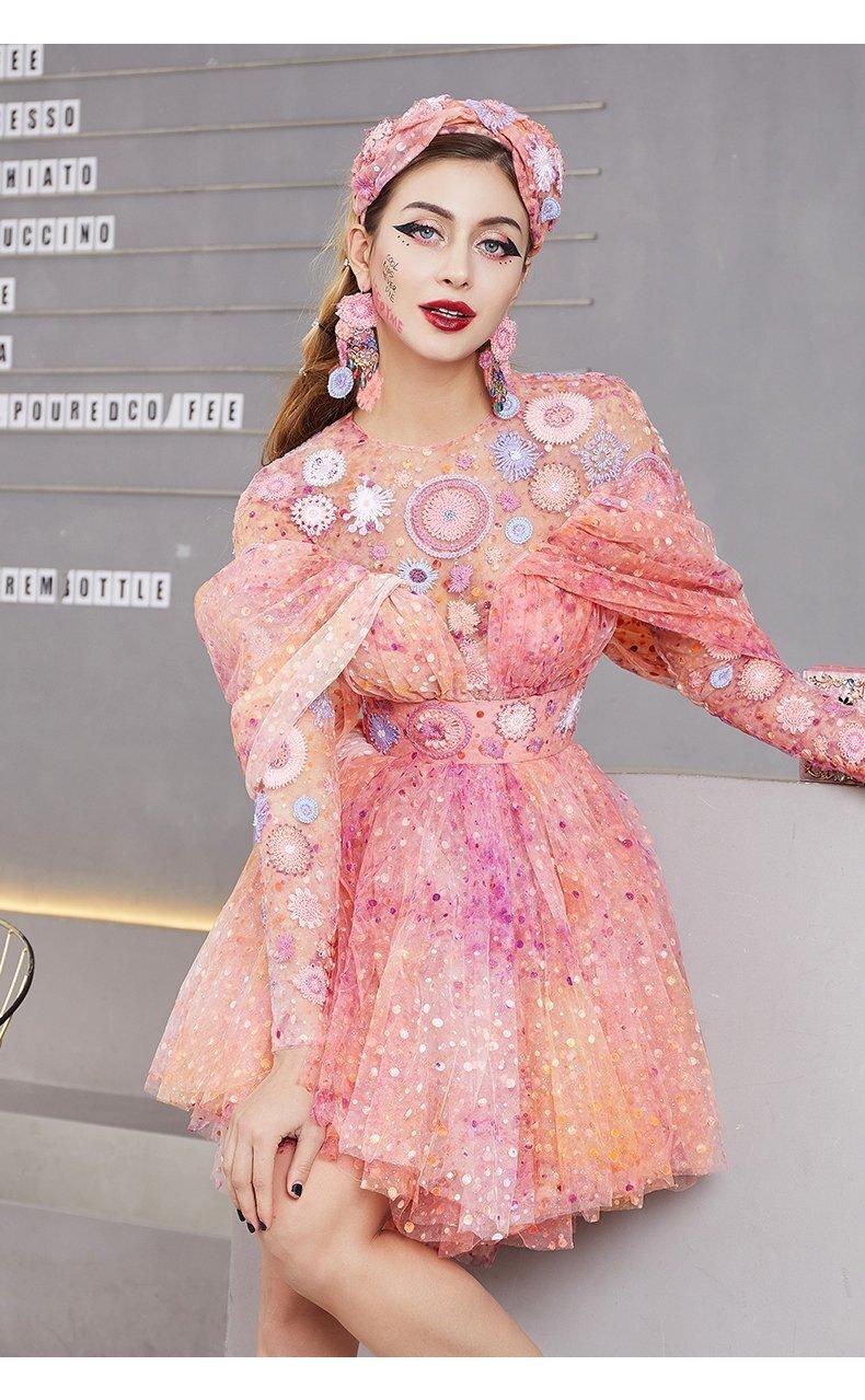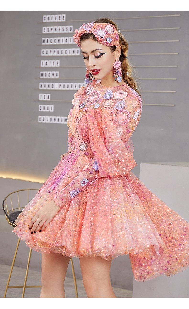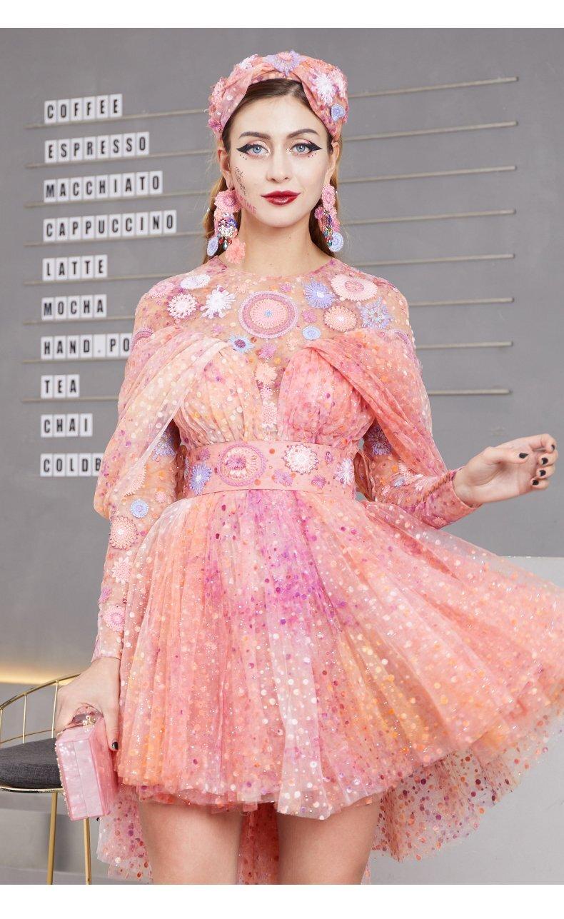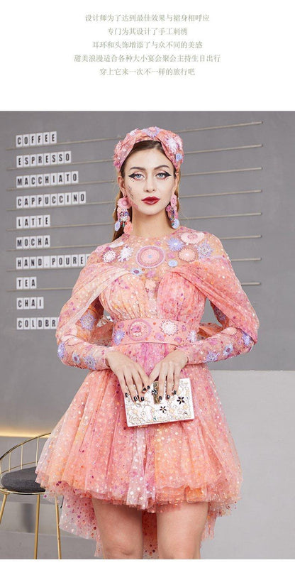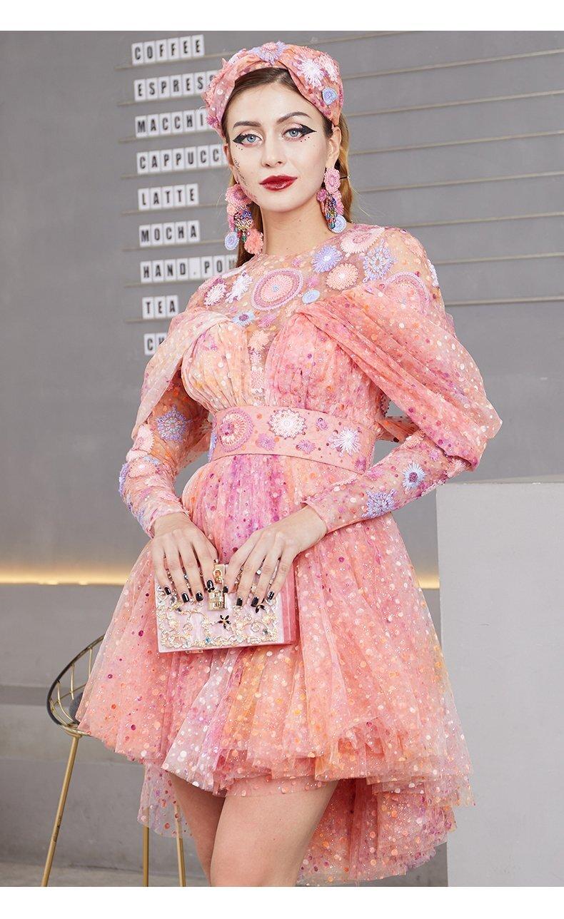 Romantic elegant hand-embroidered exquisite cocktail dress