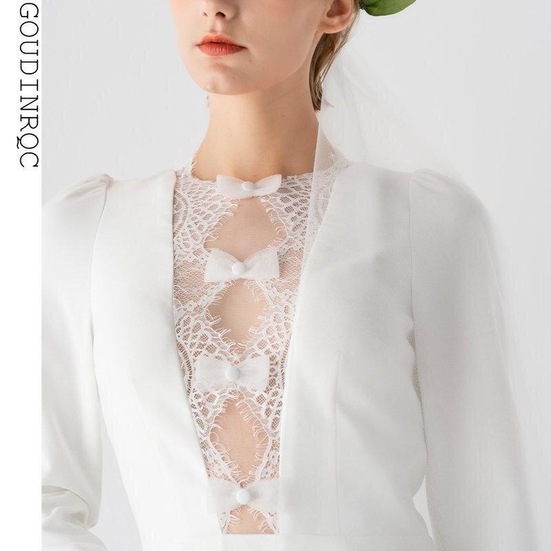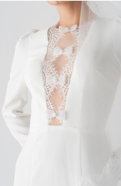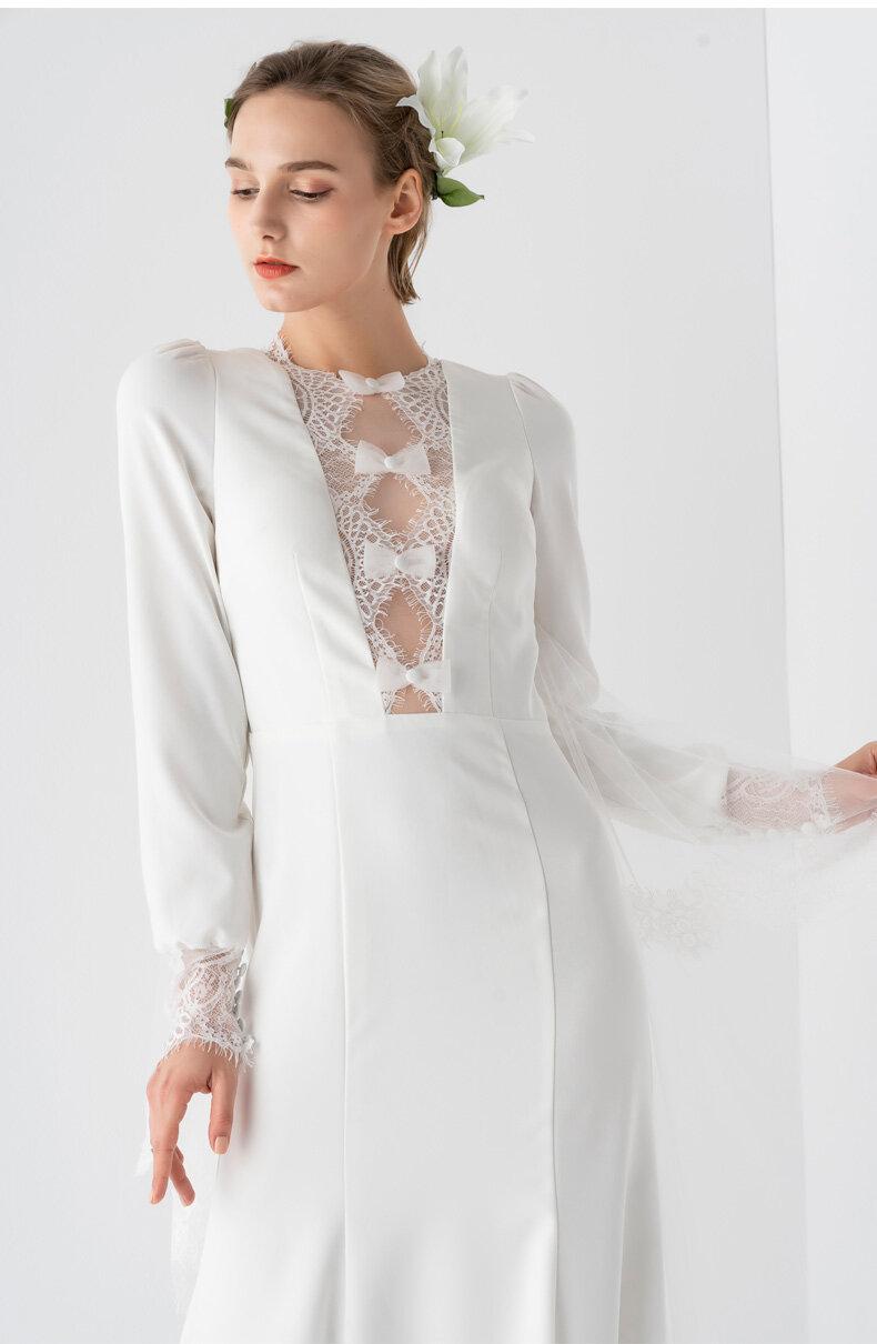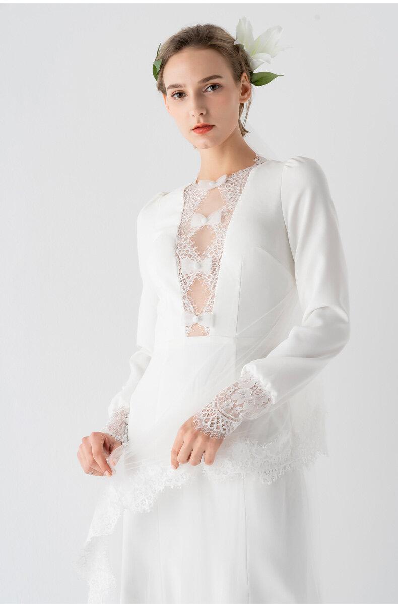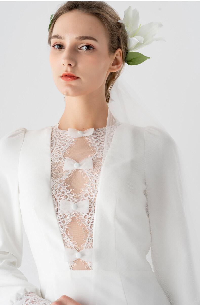 Light luxury elegant simple whit bridal wedding dress - Pamo