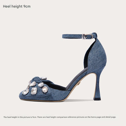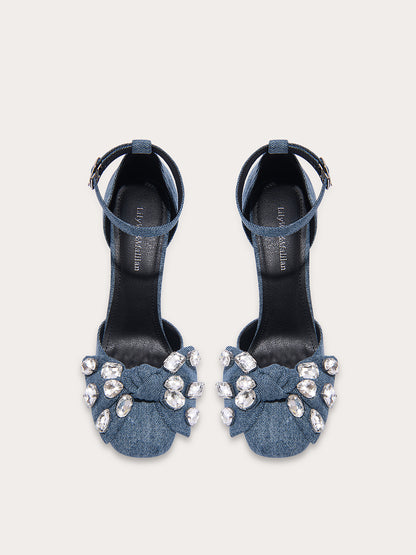 Lily Wei [Blues Starlight] Square Toe Fashion Sandals Women's Summer Bow Glass Heels-ALICE