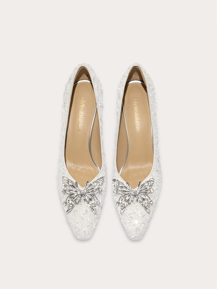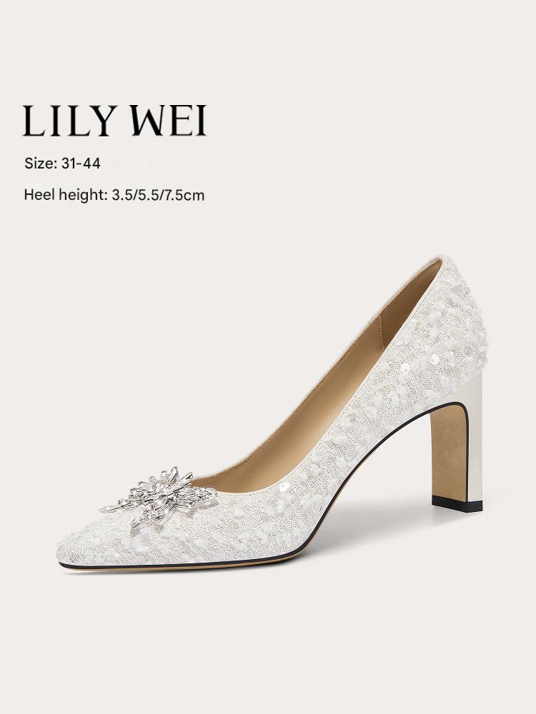 Slip into sophistication with Lily Wei [Phantom Snow Flowers] White Square Head Banquet Main Wedding Dress Bride High Heels. These elegant shoes feature block heels for comfort and a square head design for a stylish touch. Perfect for weddings and formal events, these heels will make you feel exclusive and luxurious.