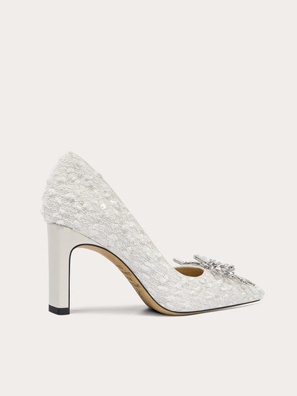 Lily Wei [Phantom Snow Flowers] White Square Head Banquet Main Wedding DressBride High Heels, Block Heels, Comfortable- AMY