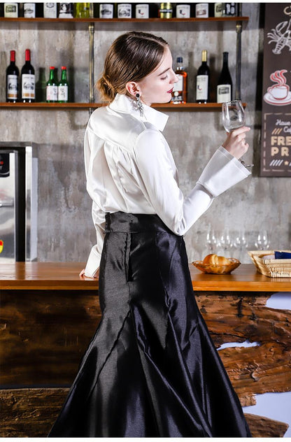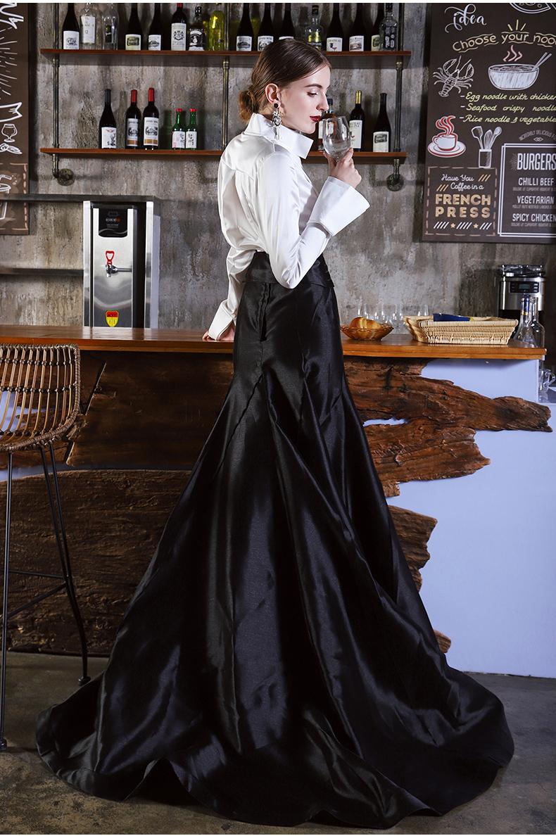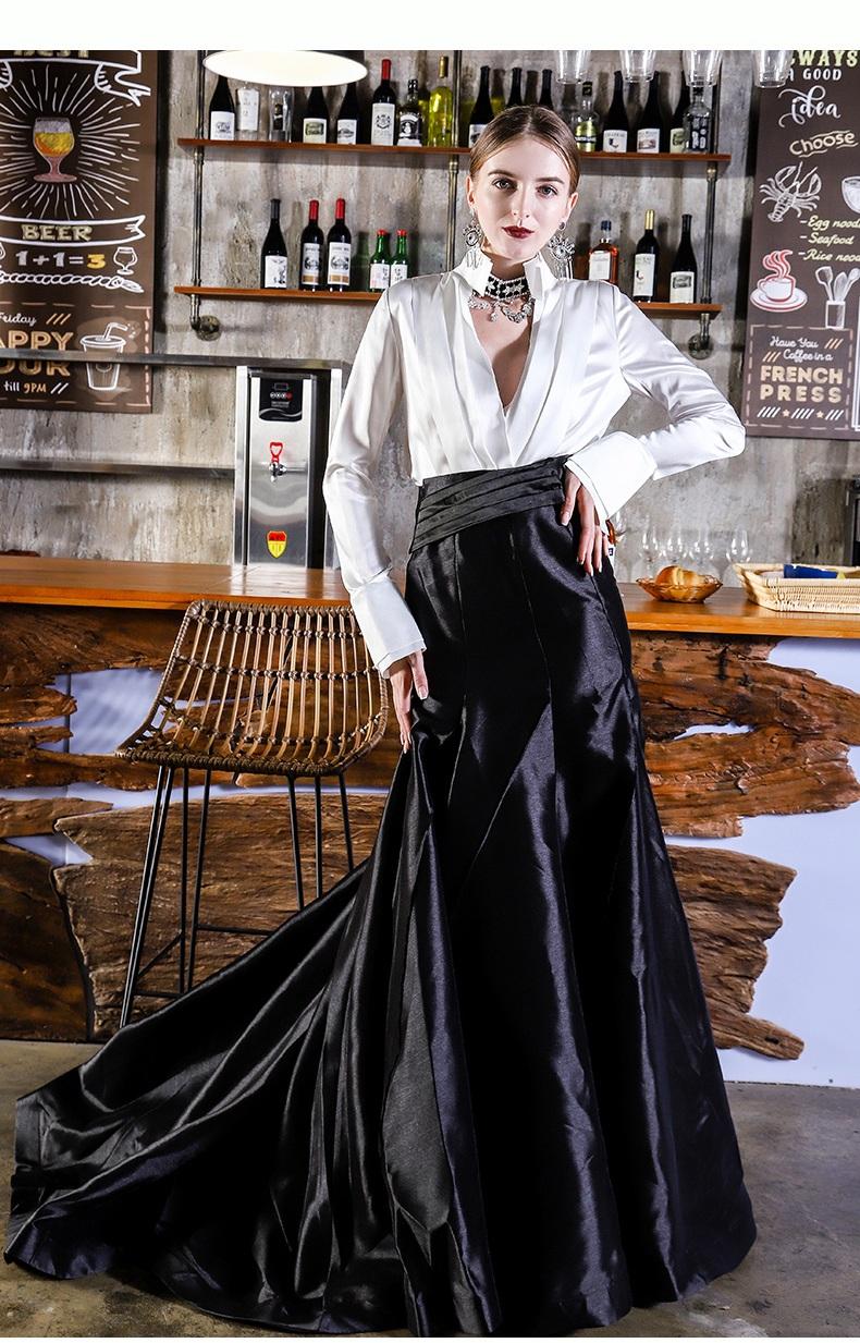 Limited edition elegant high end stand collar long sleeve banquet cocktail sexy deep V neck fishtail evening dress - Adara