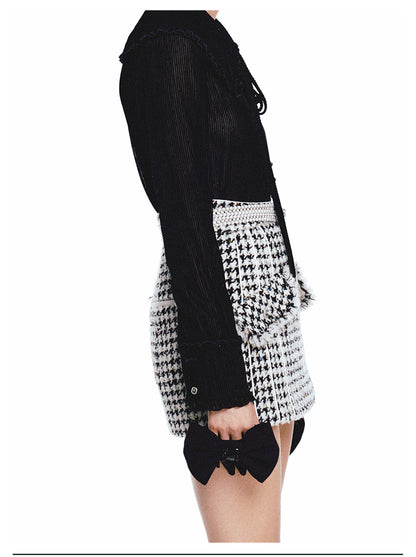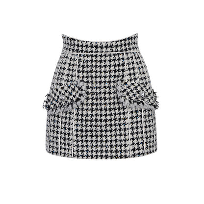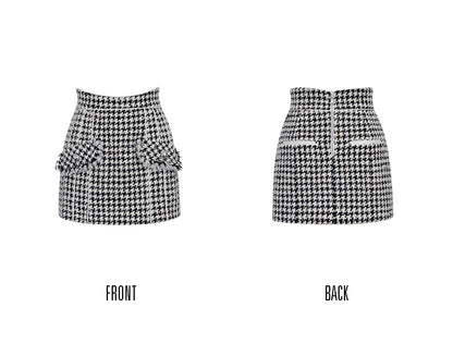 Limited edition Autumn Vintage Silhouette Tweed Houndstooth mini Short Skirt + jacket suit set - efeu