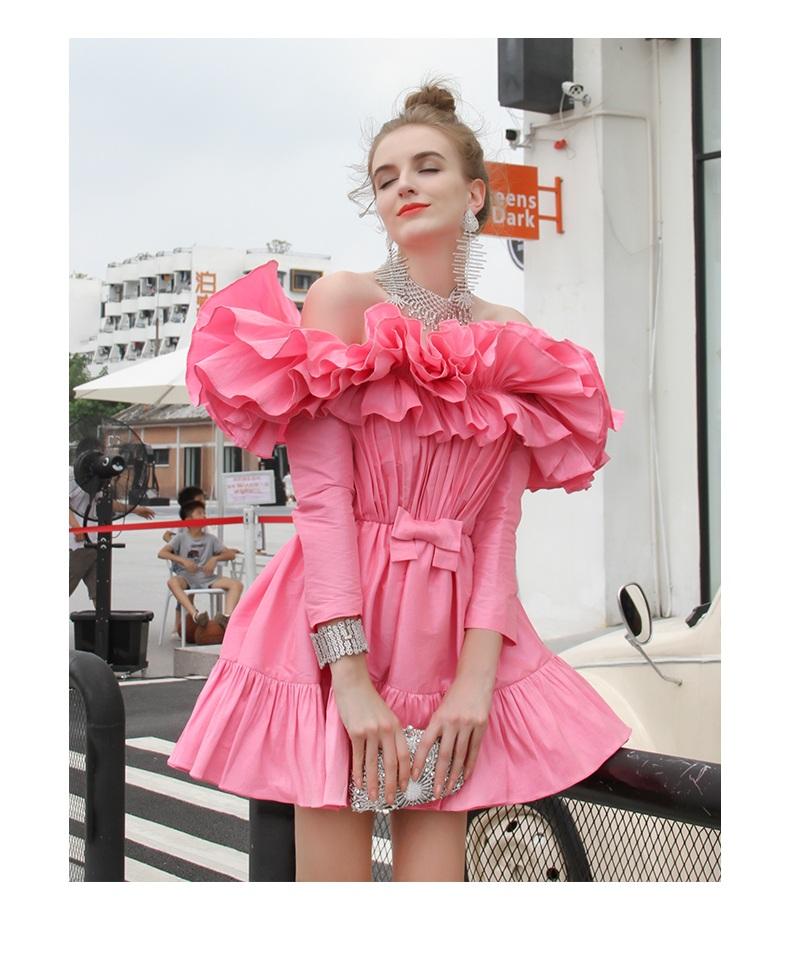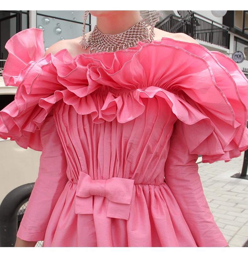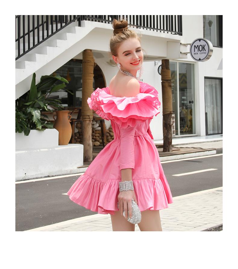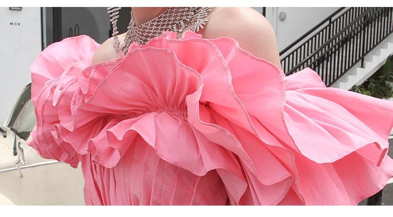 Limited Sweet Fashion Ruffled Layered off Shoulder Princess Puffy Dress Dinner Party cocktail ruffle off shoulder pleated hem pleated collar pink dress - Tevi