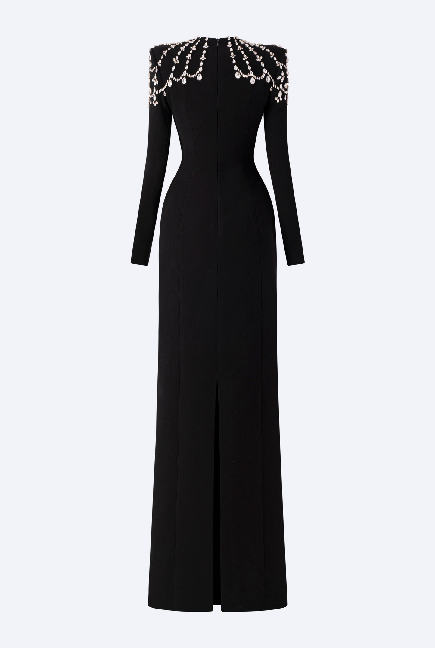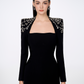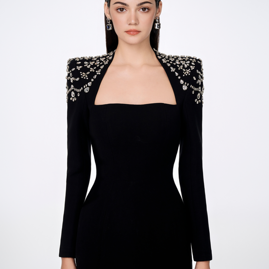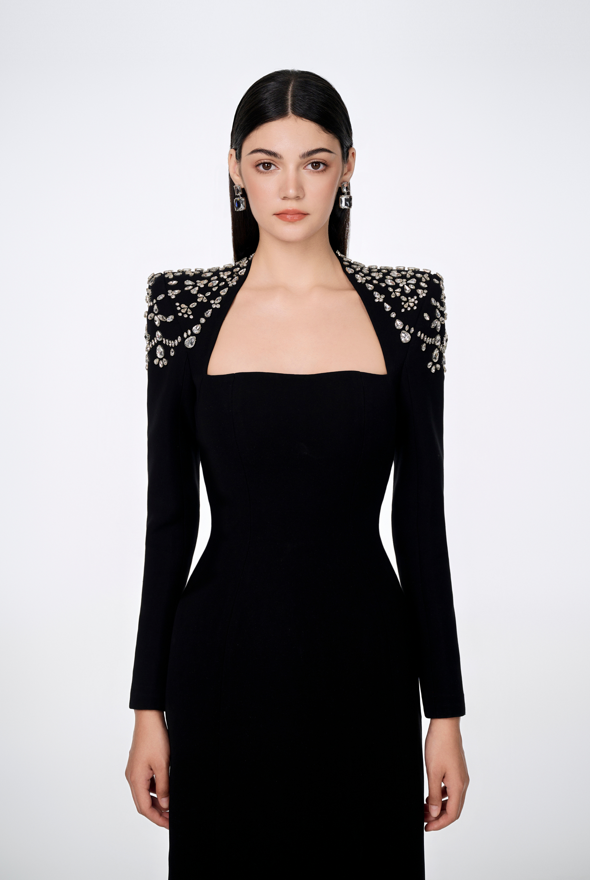 oyal to its commitment to modern, dynamic and chic fashion, Tracy Studio presents a stunning bodycon dress with a one-of-a-kind neckline design. The dress is a blend of advanced tailoring techniques and meticulous attention to detail. The bodycon design accentuates the curves of the wearer and the unique neckline adds to the dress's allure, drawing attention to the full bust. The addition of luxurious stone details on the shoulders showcases Tracy's dedication to creating high-end, contemporary fashion pieces. Perfect for parties and special events, this dress is sure to turn heads and make a bold fashion statement.
