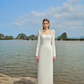 Long Sleeve Trapezoid Neckline Bodycon Full white Dress - Nina