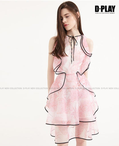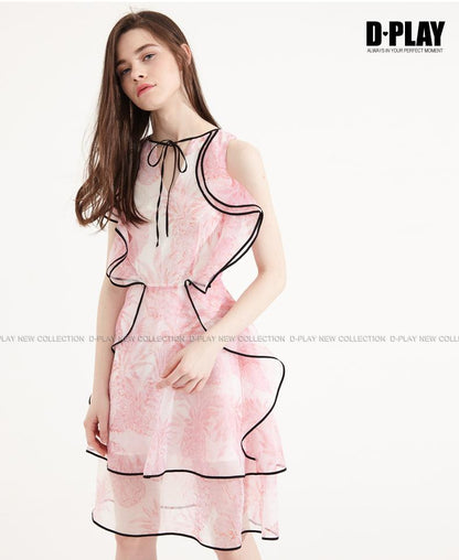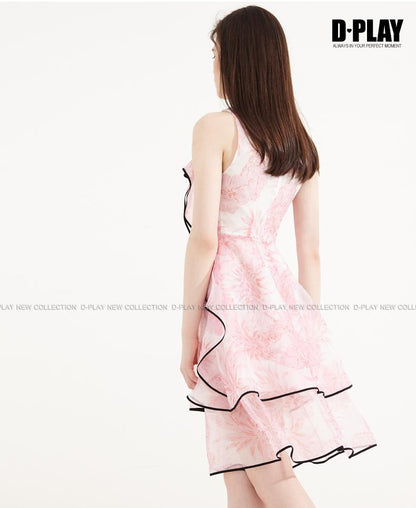 FINAL SALE lotus leaf lace yarn pink avant-garde dress- Toli