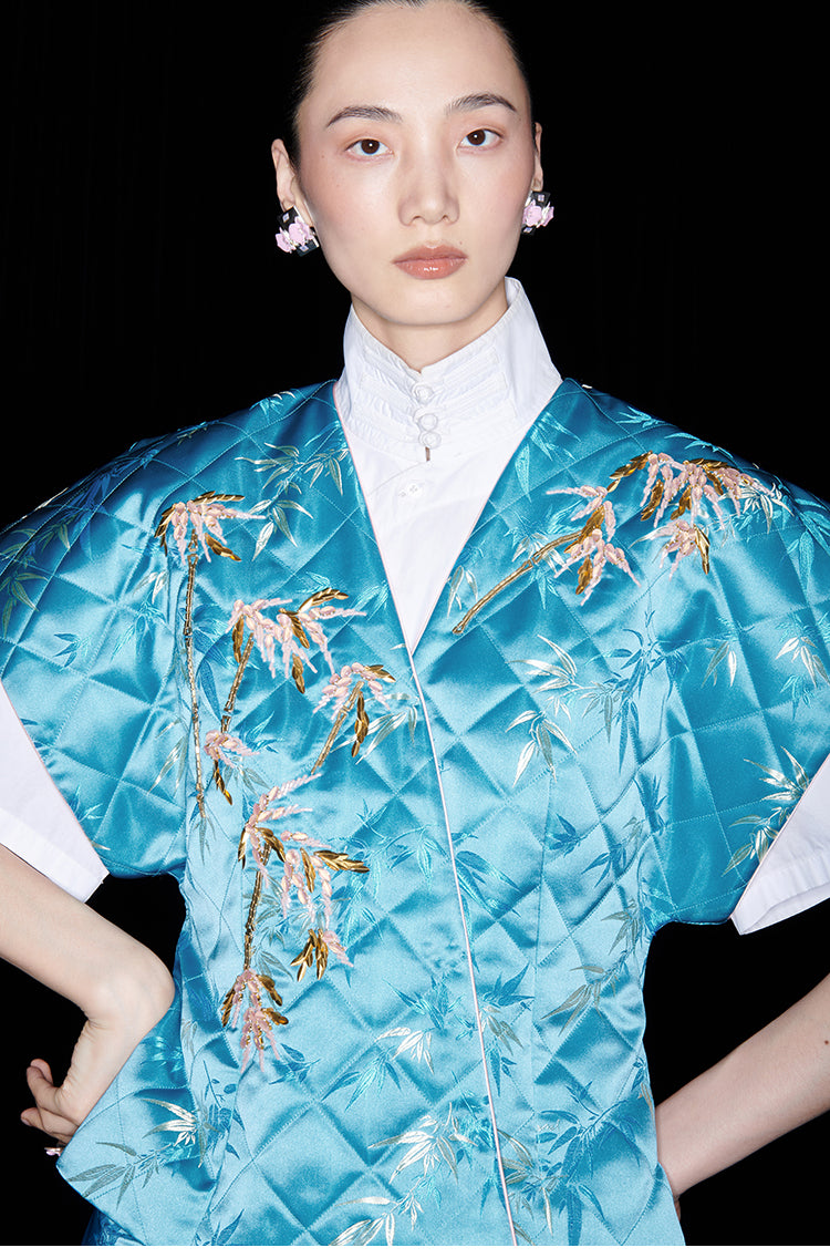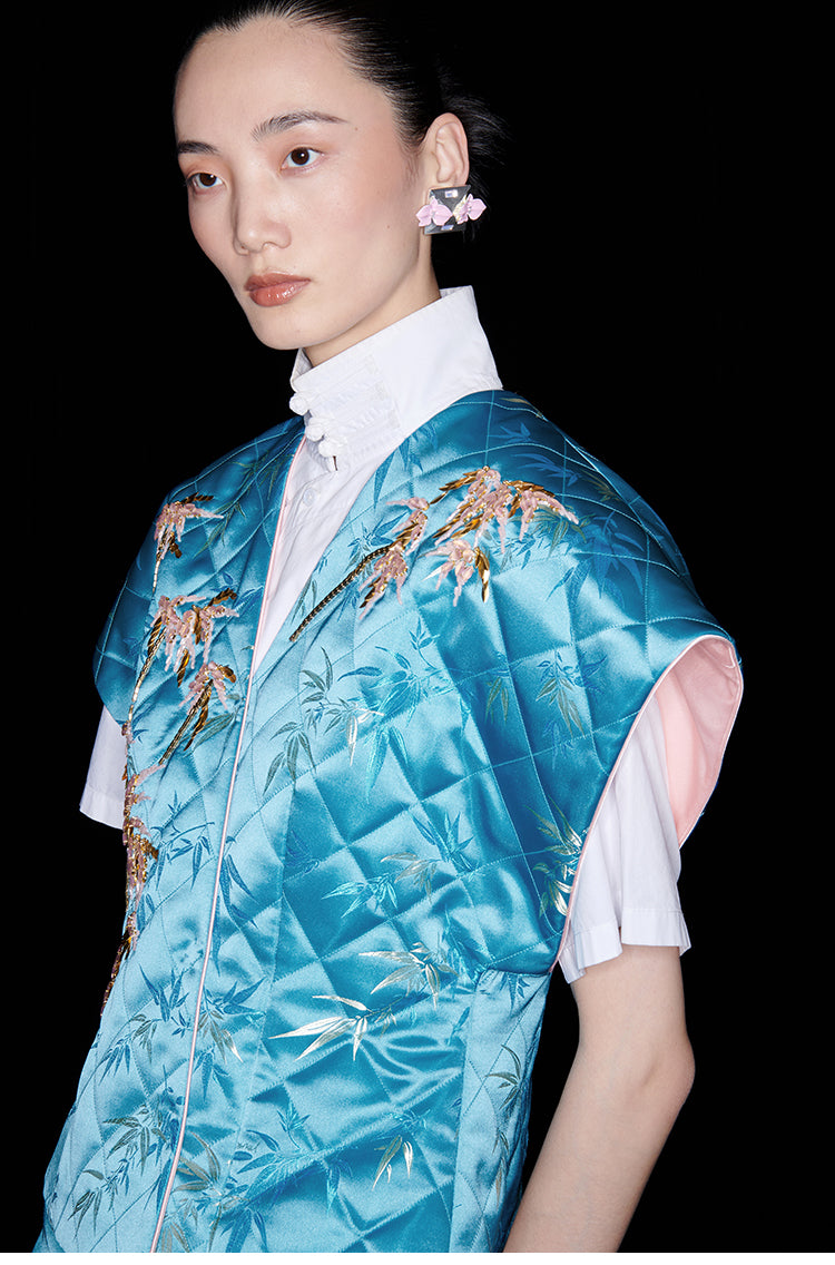 M essential Ma Kai designer golden autumn bamboo nail beads vest - bran.