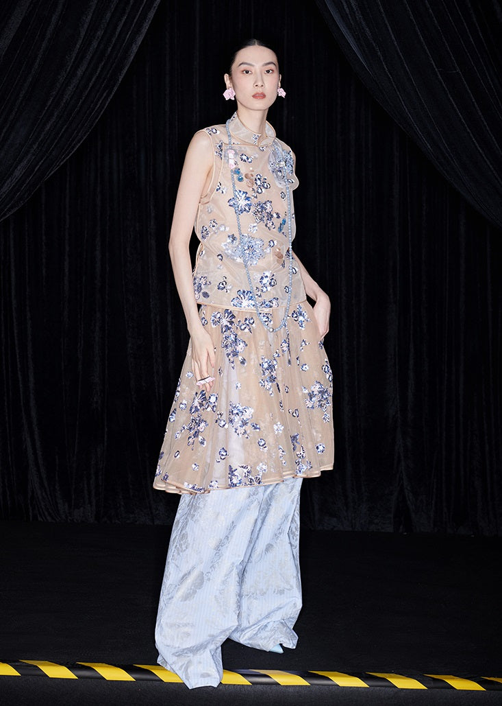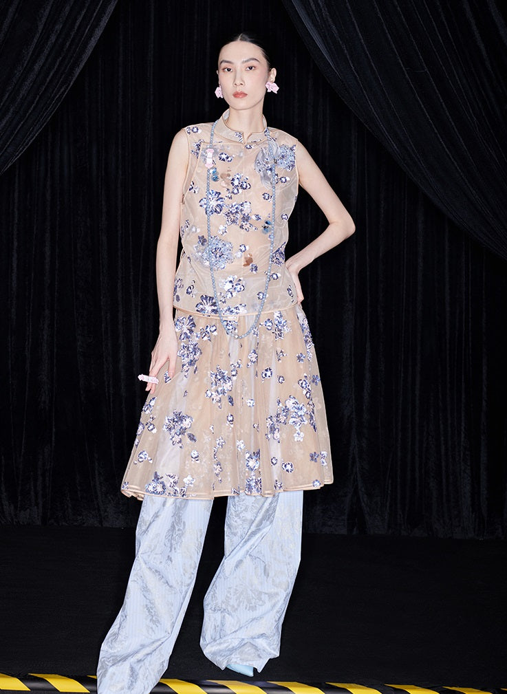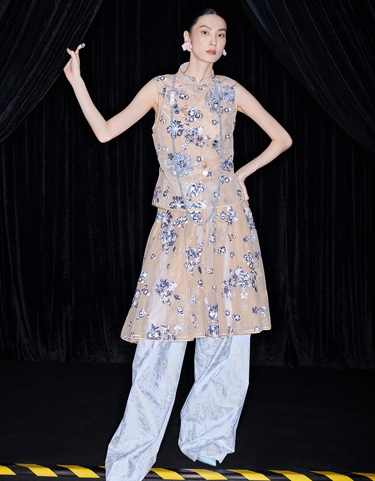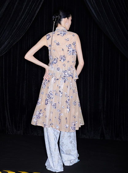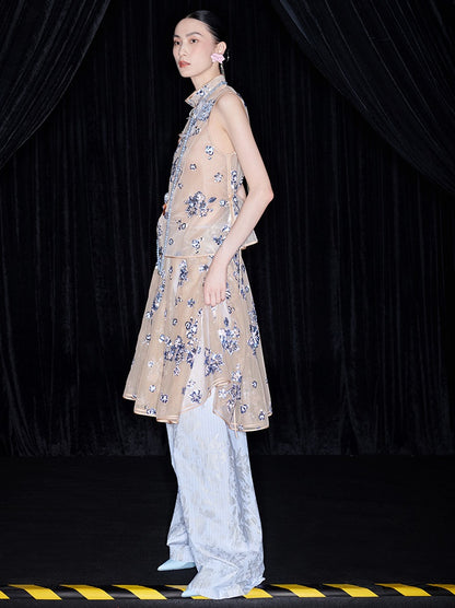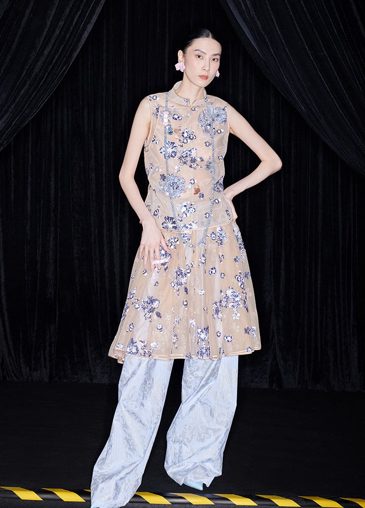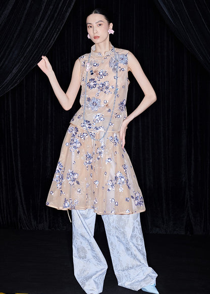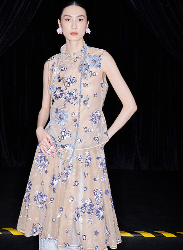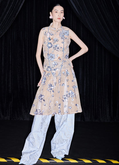 Be elegant with the M essential Mackay designer brand embroidered primrose semi-transparent vest. This stylish piece adds a touch of romance with its delicate primrose embroidery. Embrace your inner fashionista with ease. (No serious fashion statement needed!)