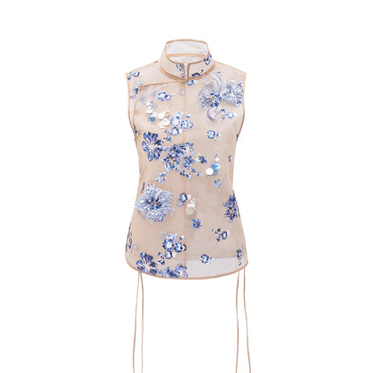 M essential Mackay designer brand embroidered primrose semi-transparent vest - love.