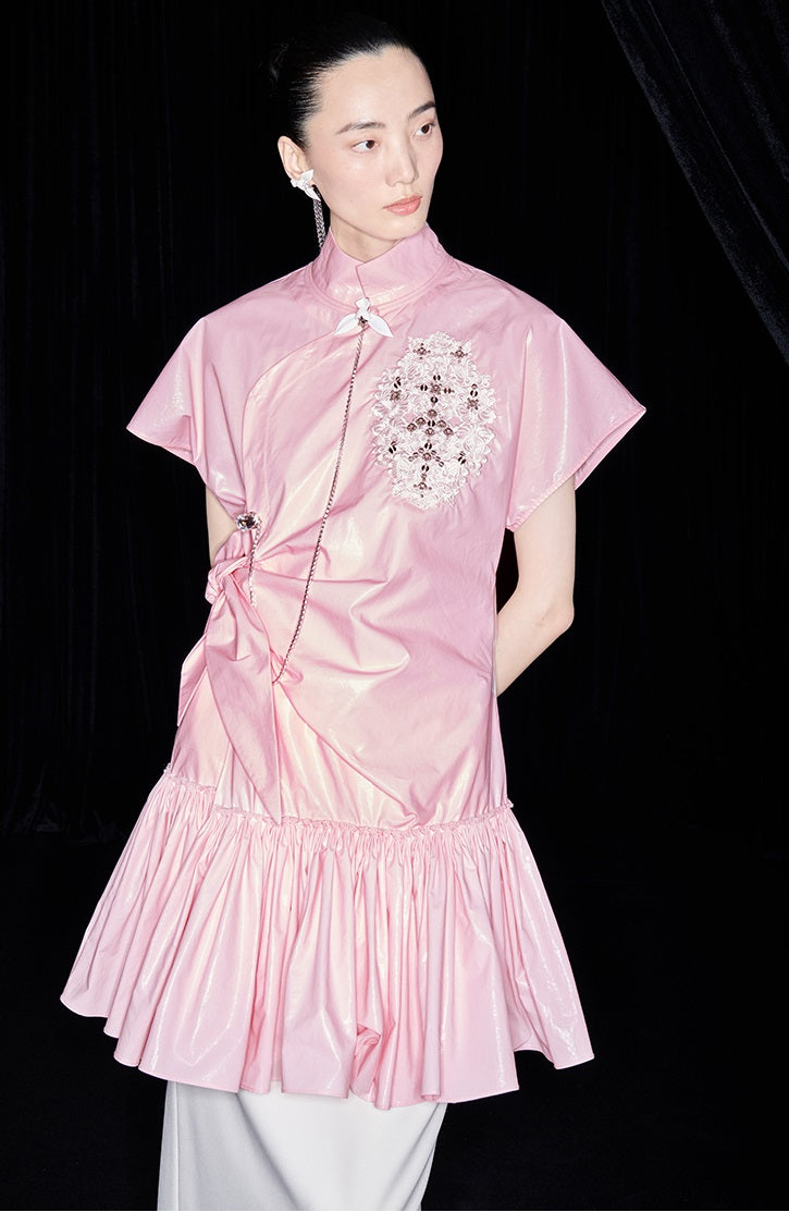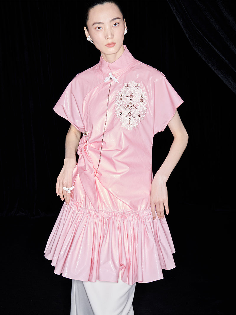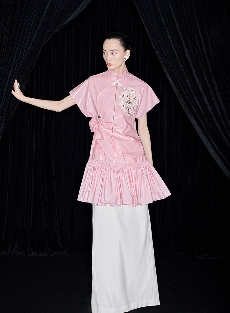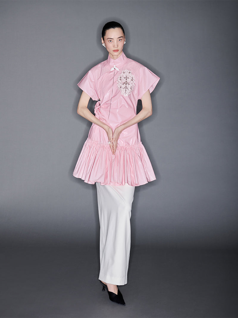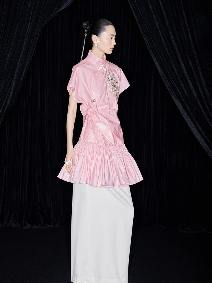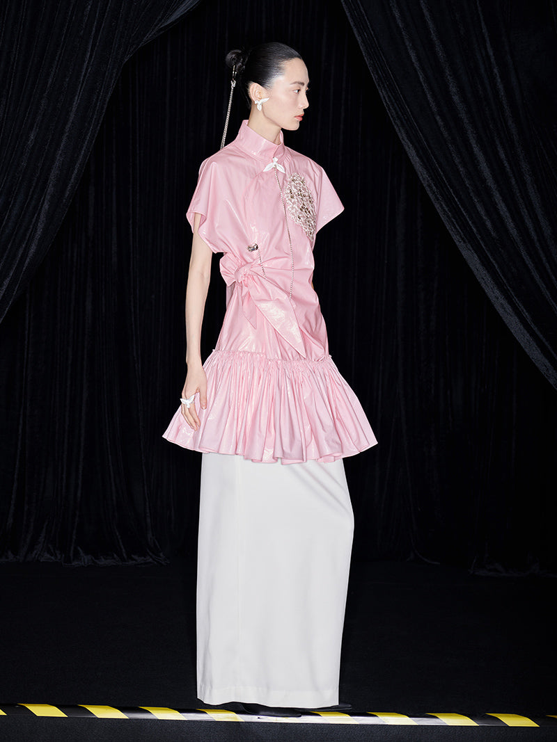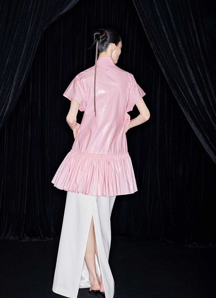 M essential Mackay designer Pink Peach Quilt Pleated Cardigan dress skirt - Lotta.