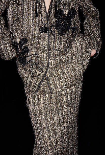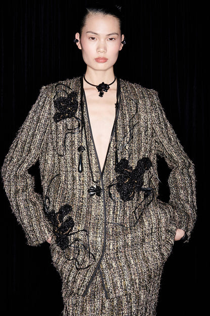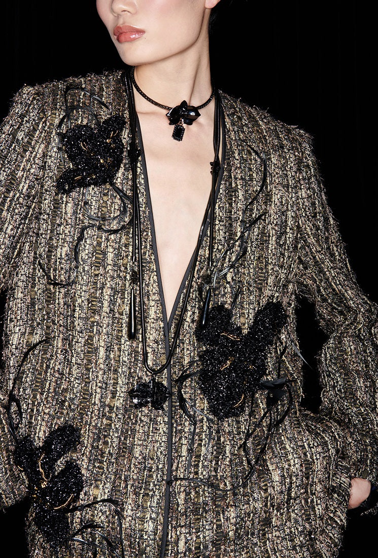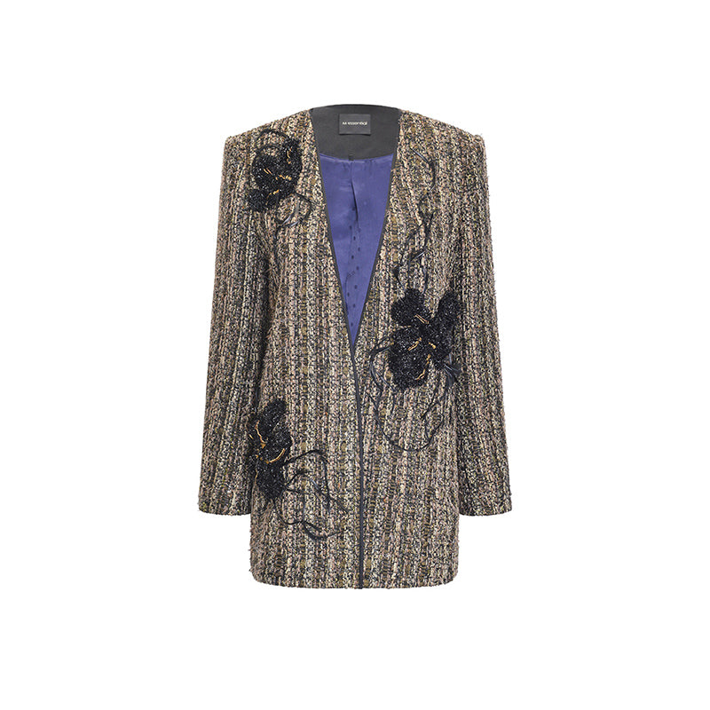 Elevate your style with the M essential Mackay designer brand wrought iron orchid feather beaded suit - access. This classy ensemble adds a touch of elegance to any outfit, making you stand out with its unique design. Perfect for those who want to make a statement with their fashion choices.