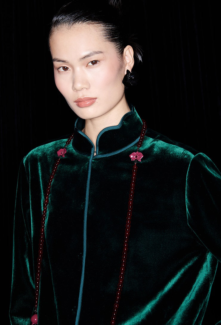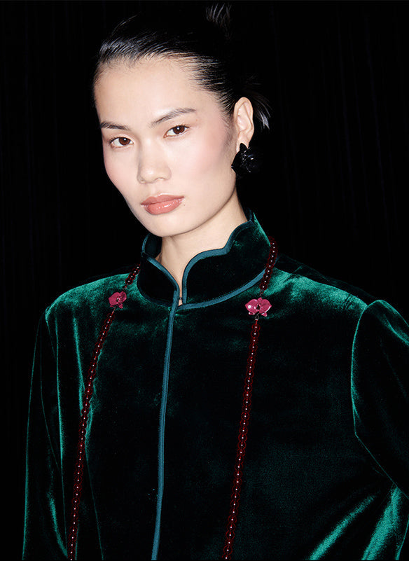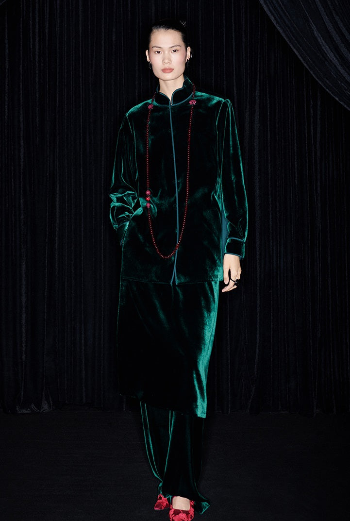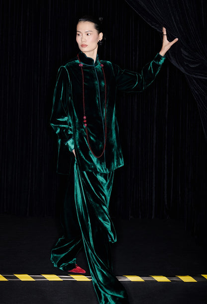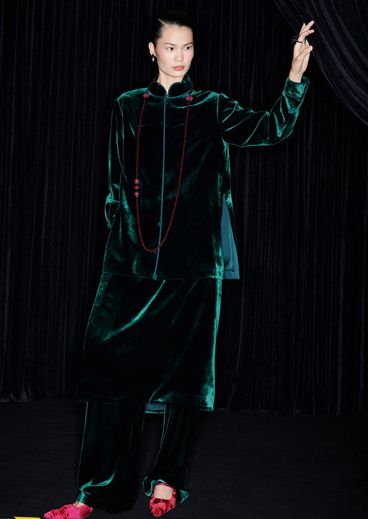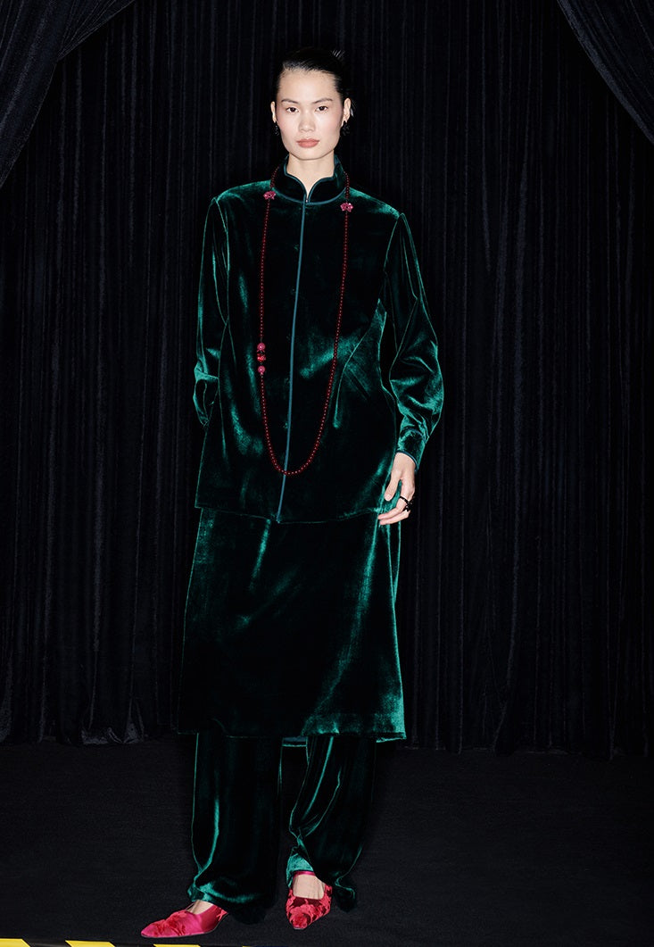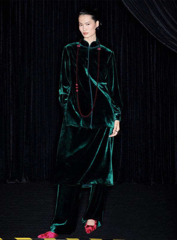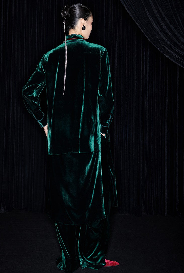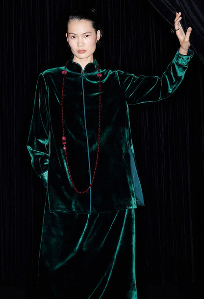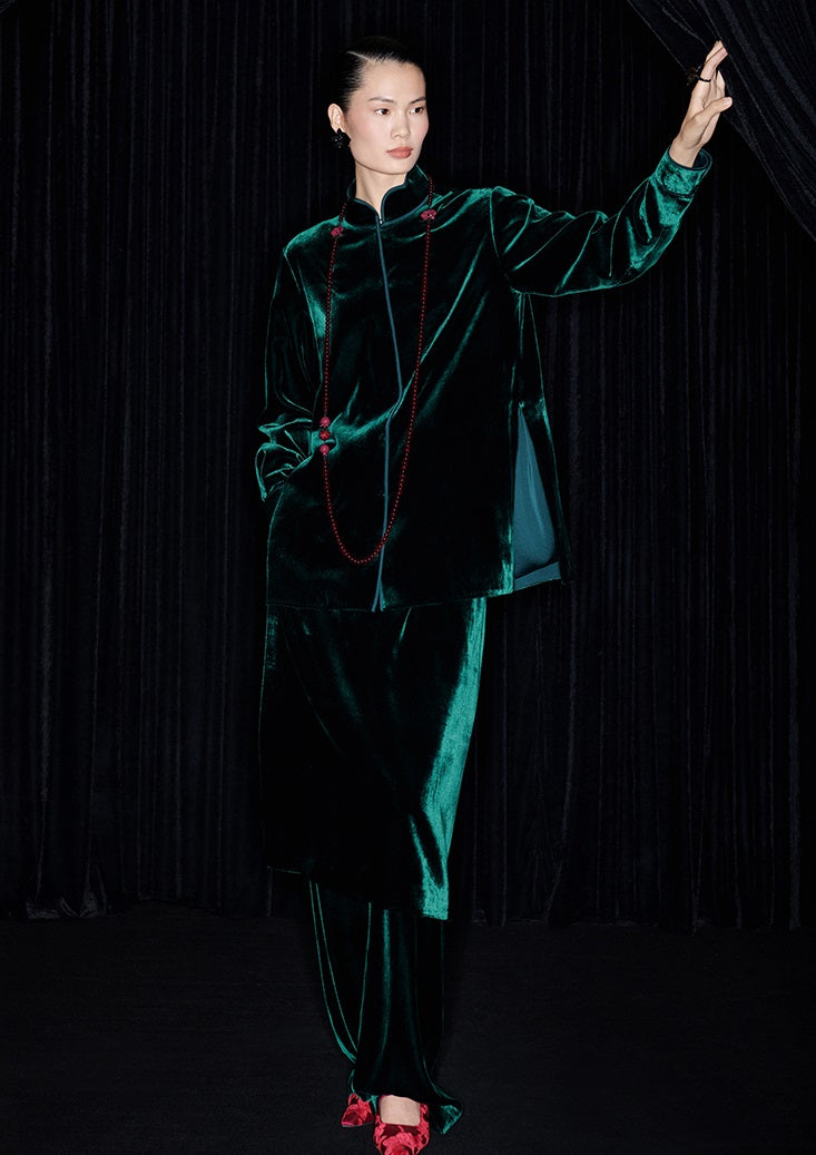 M essential Mackay designer dark green pot-collar shirt top Pant Skirt suit- adam.