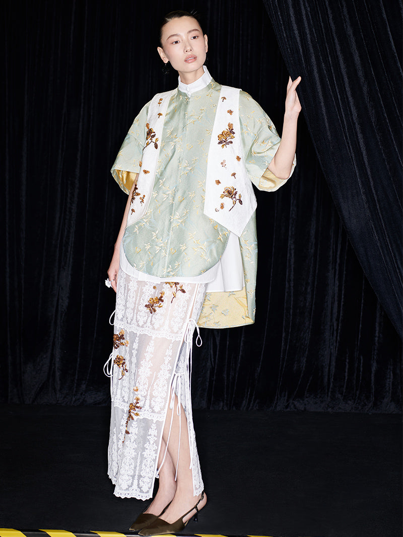M essential Mackay designer Donchang jacquard low stand-up collar loose short-sleeved shirt - DIVA.
