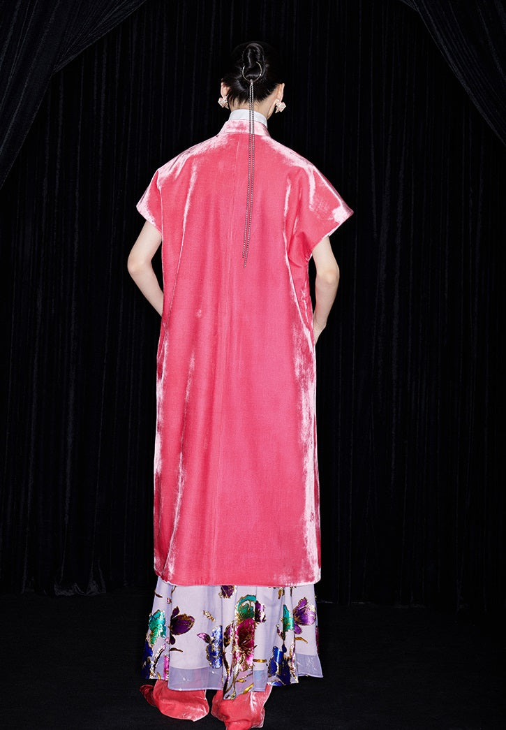 Expertly hand-painted with elegant appliqué, the M Essential Mackay designer dress is a stunning addition to your wardrobe. Its intricate beaded catenary design exudes sophistication and style, making it perfect for any occasion. Elevate your look with this beautifully crafted maxi dress.