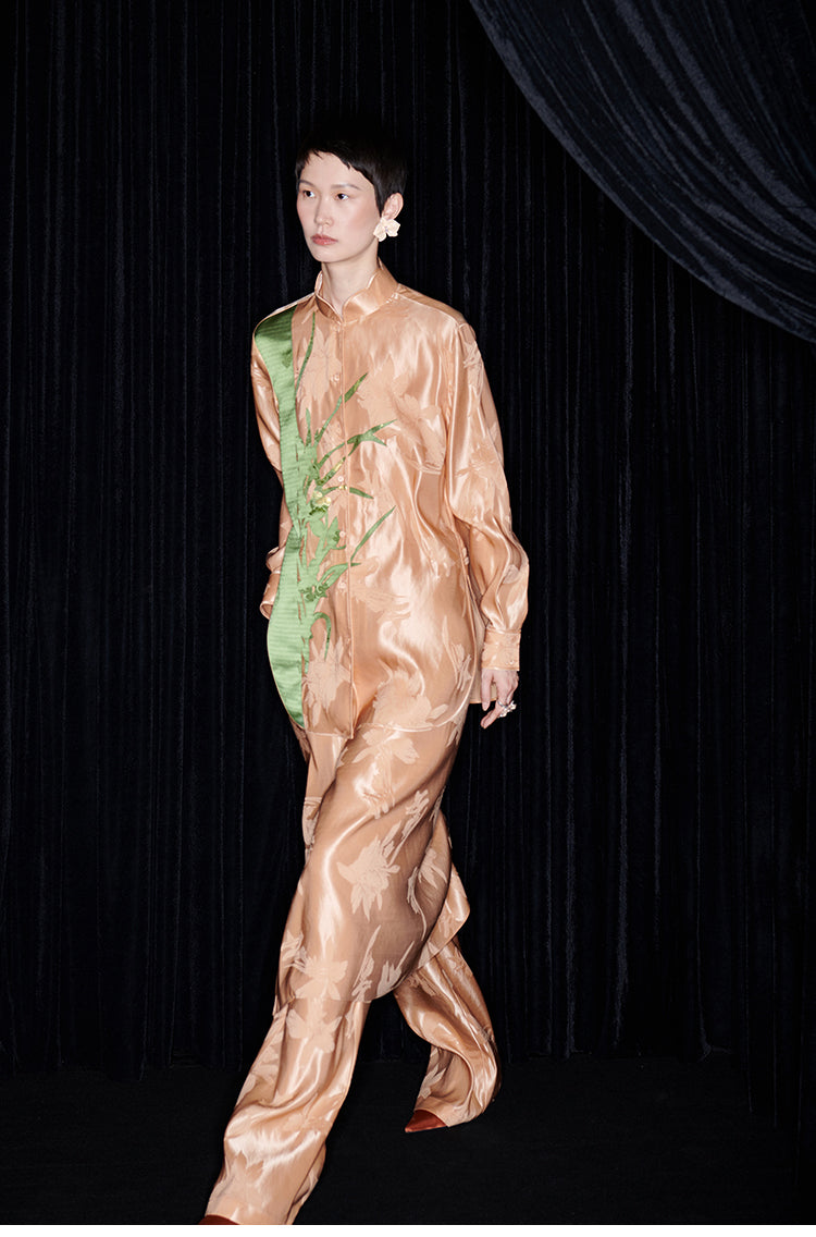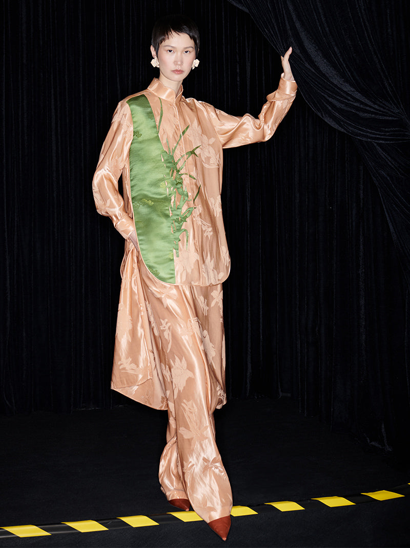 M essential Mackay designer iris jacquard orchid collage stand-up collar shirt psnt set - five.