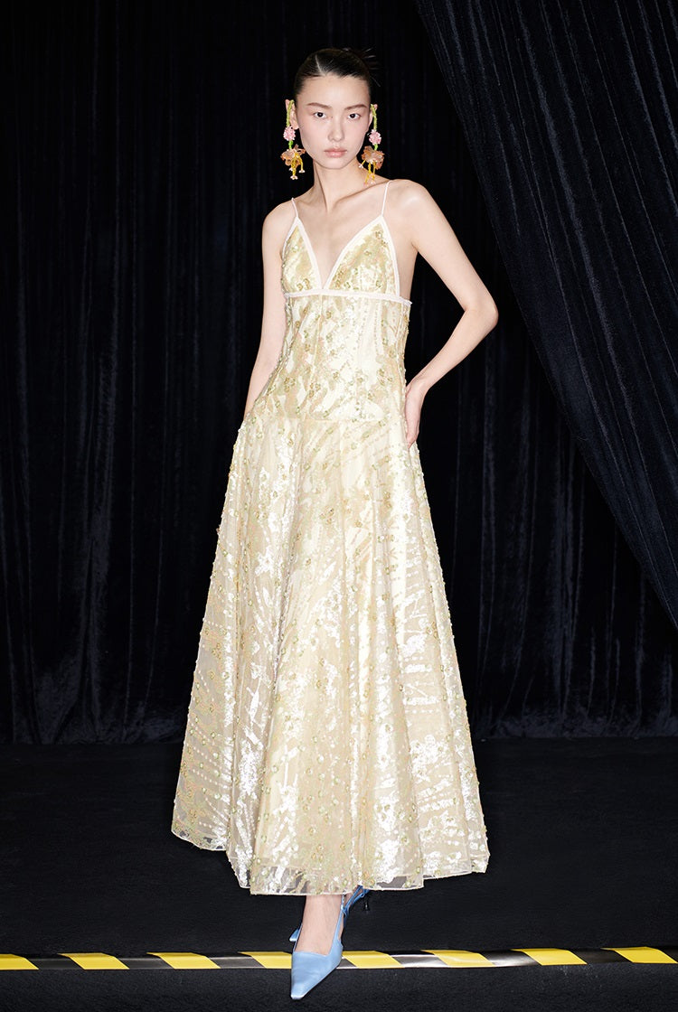 M essential Mackay designer Jinghui embroidered backless suspender dress- CAN.