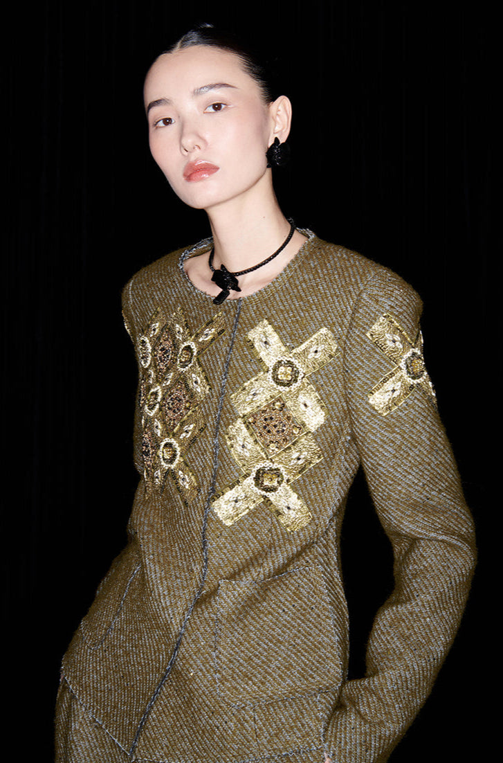 M essential Mackay designer mosaic tile beaded coat - axiss.