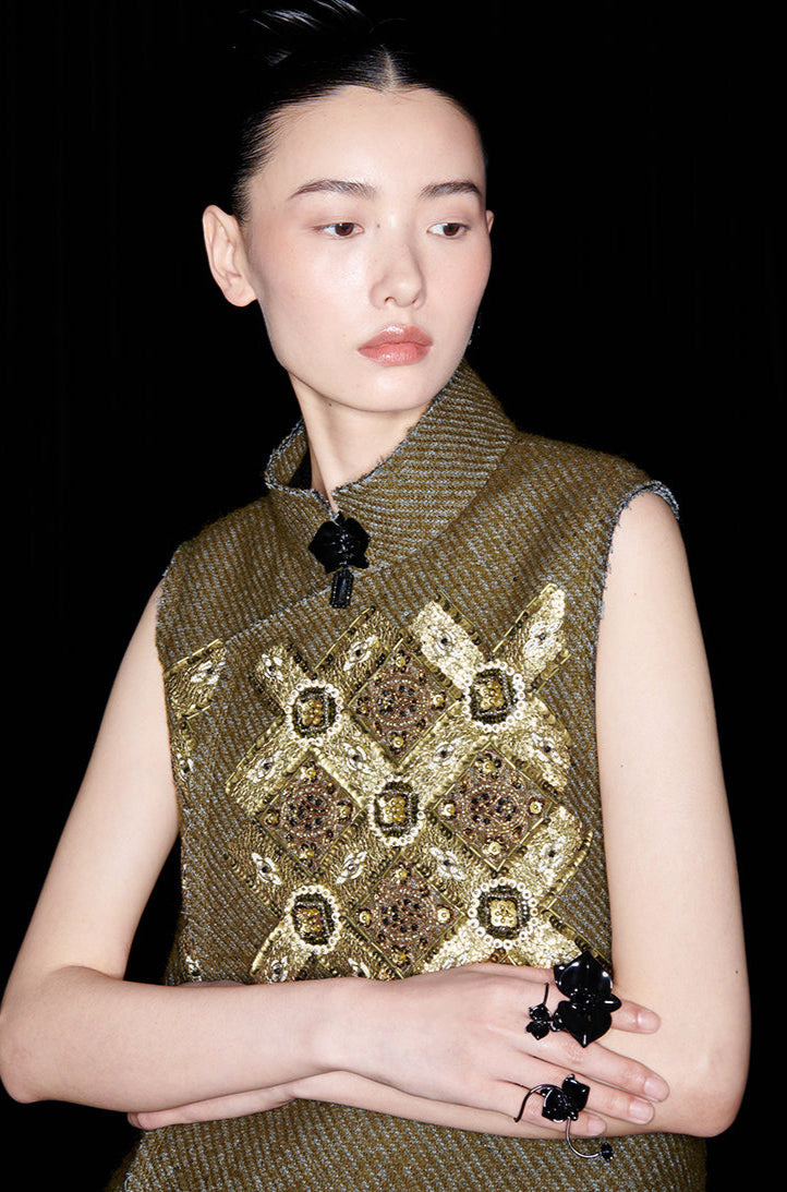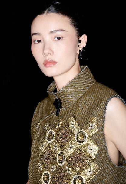 M essential Mackay designer mosaic tile beaded gilet - Axiss tell.