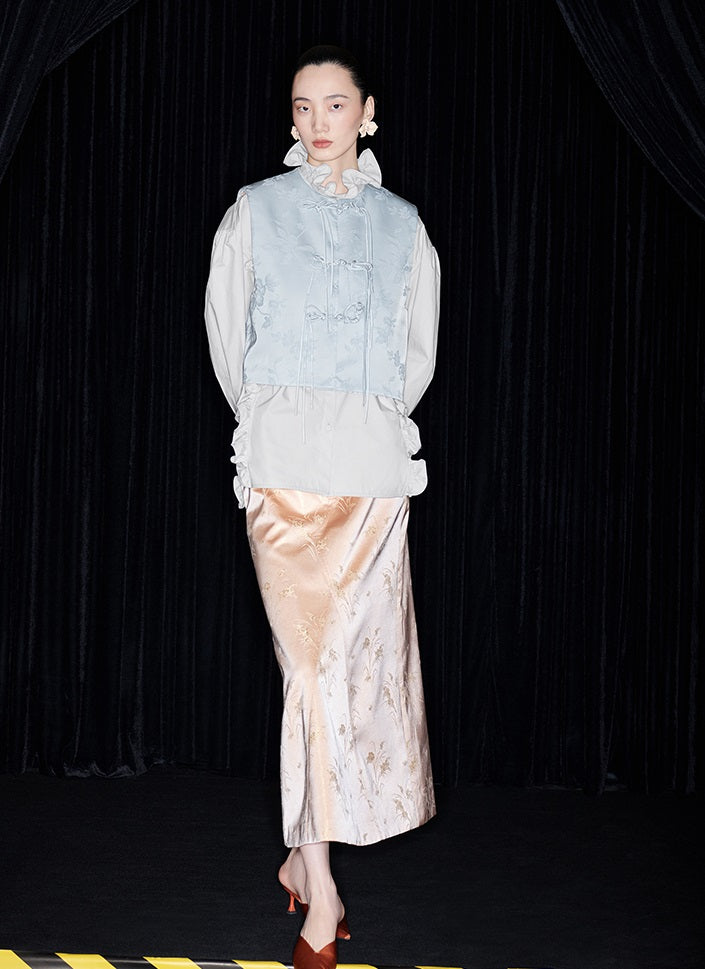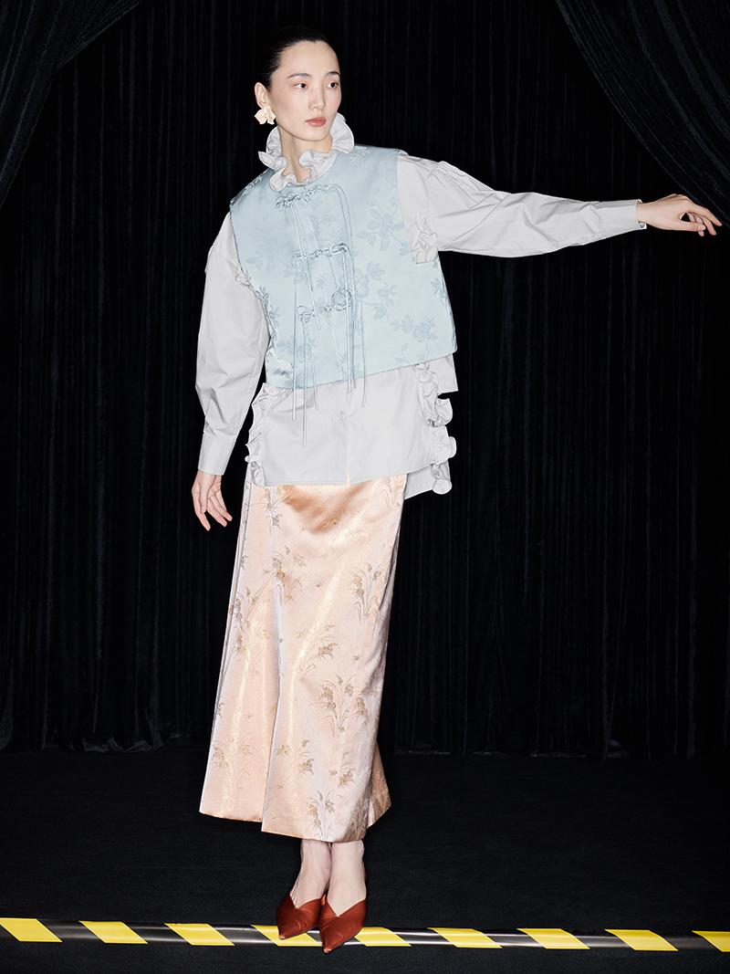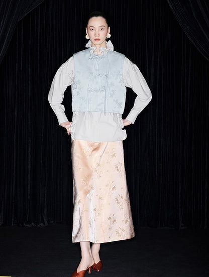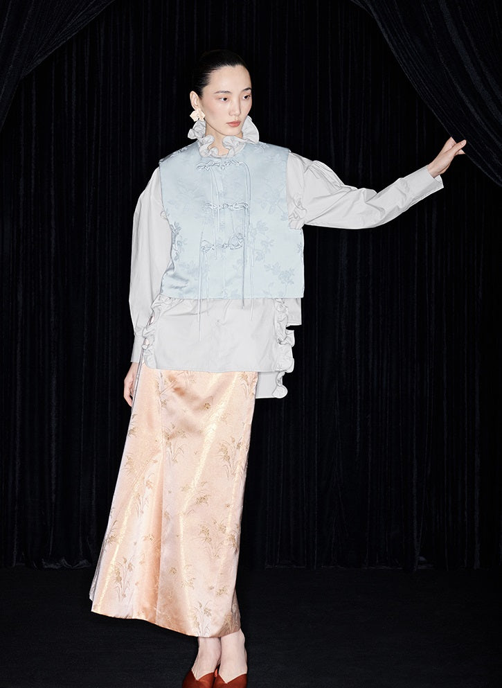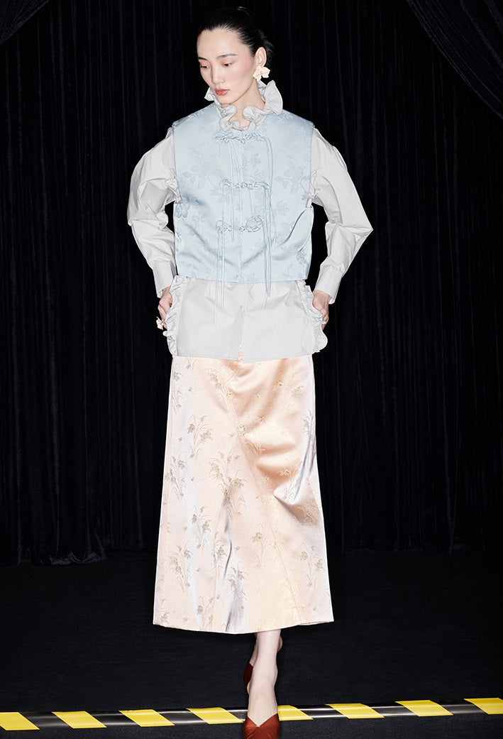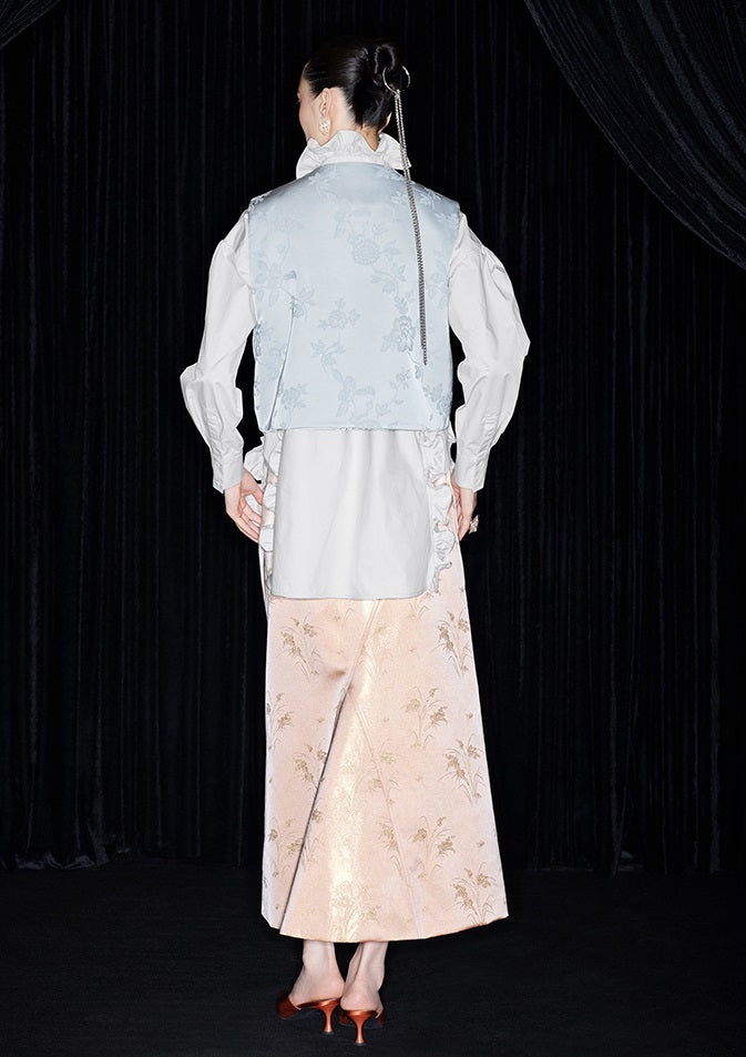 M essential Mackay designer painted jacquard handmade vest - stand.