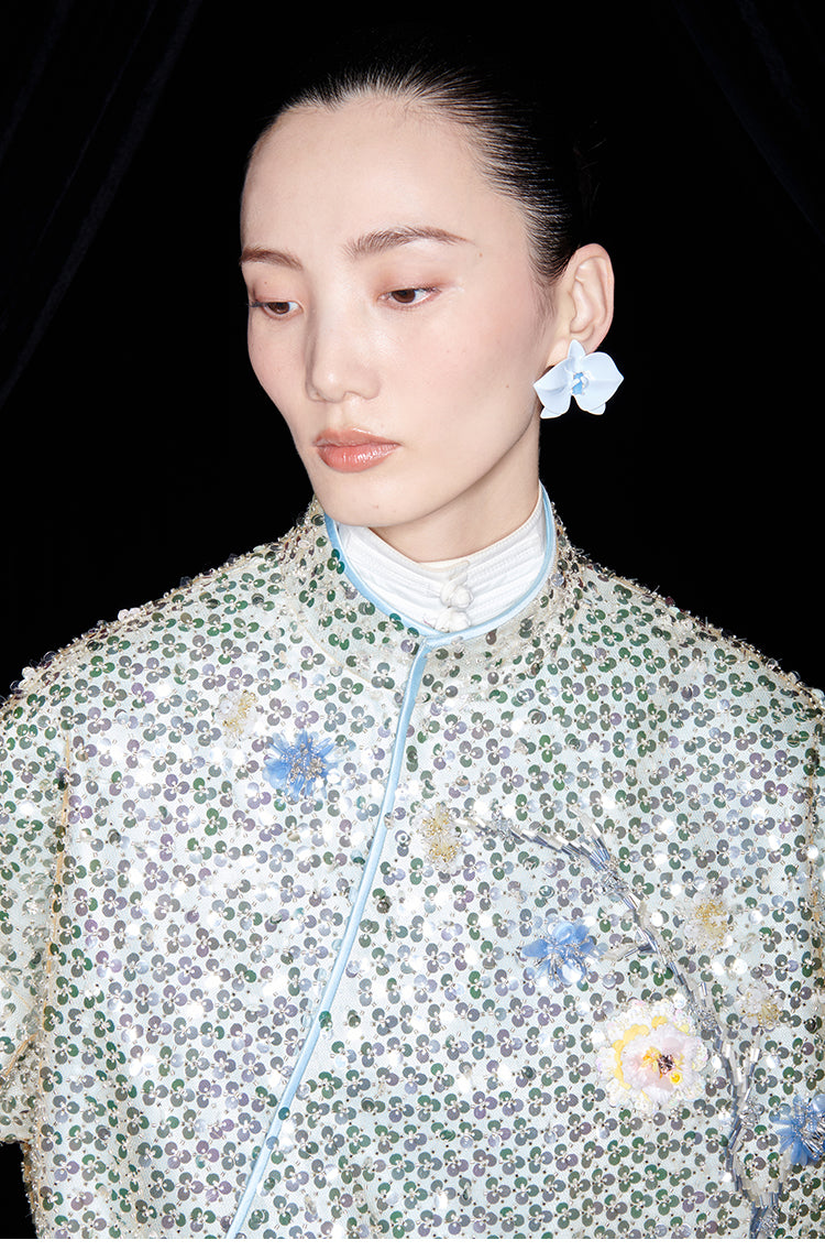 M essential Mackay designer plum blossom beaded jacket pants - drop.