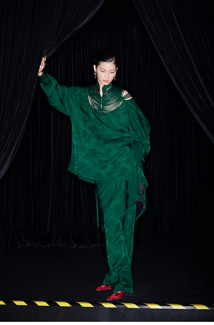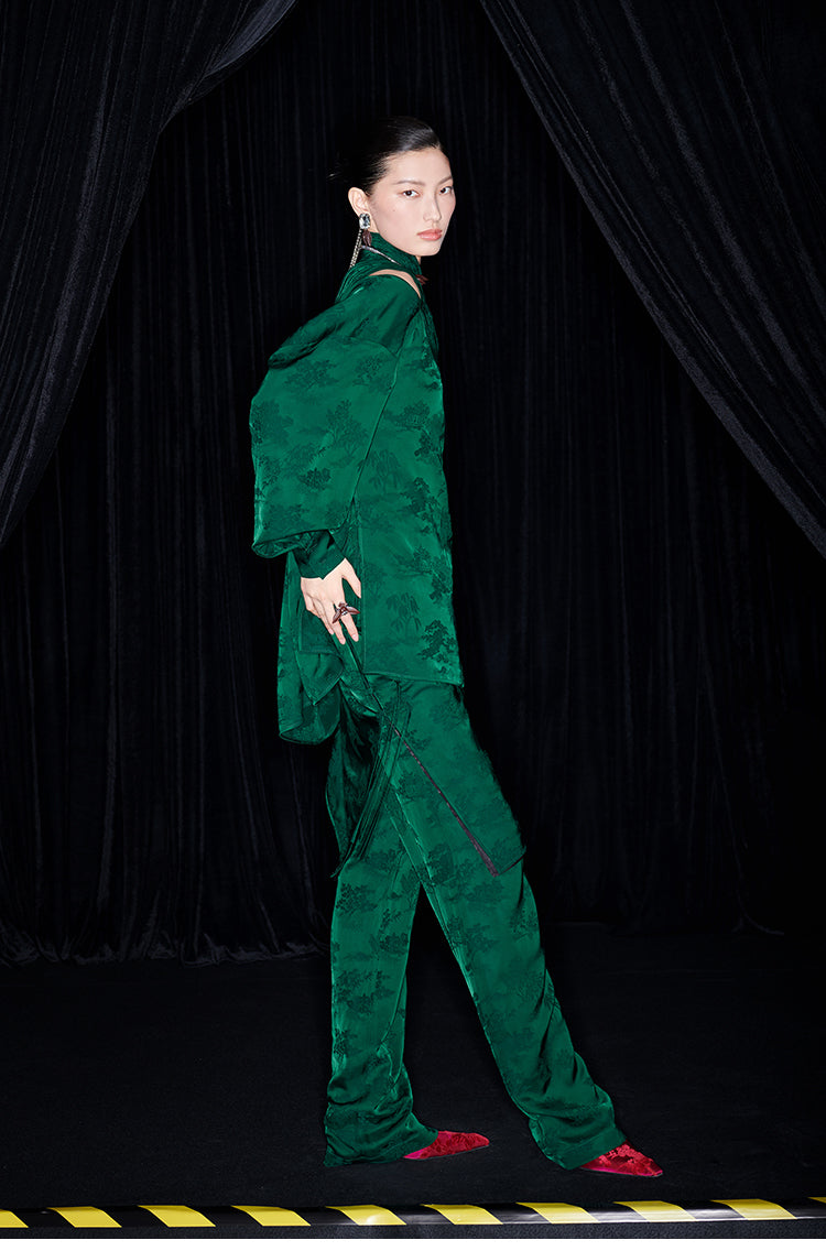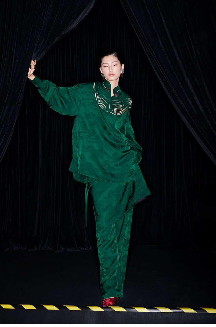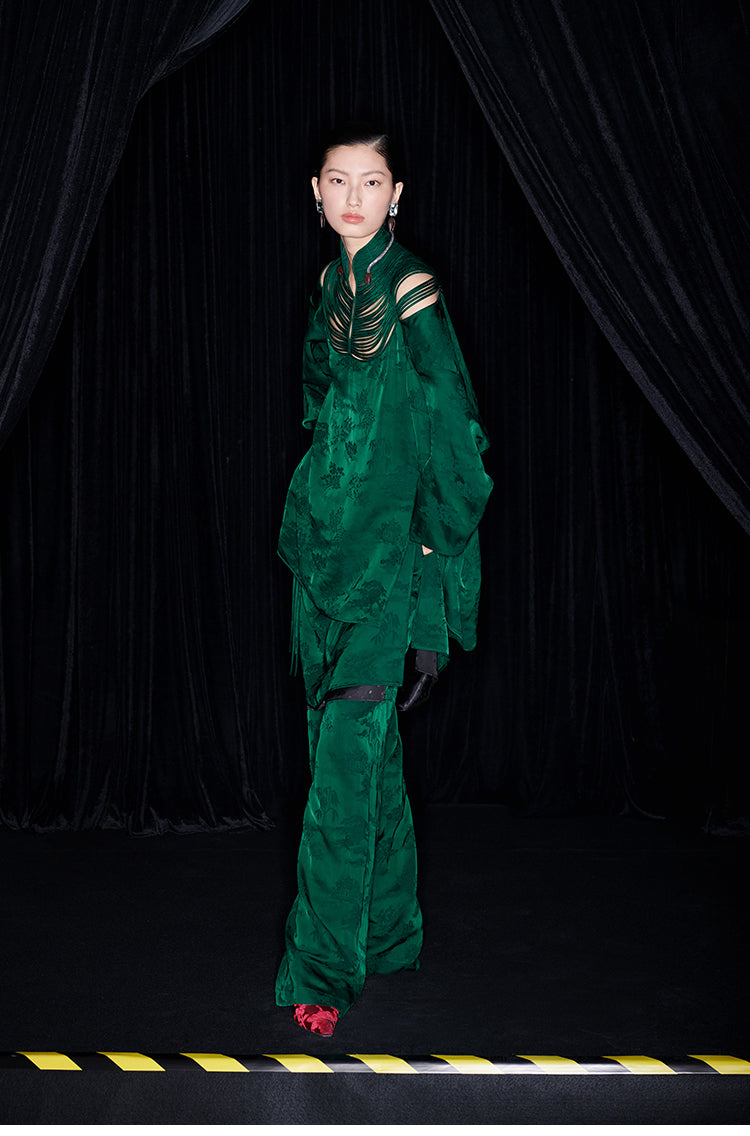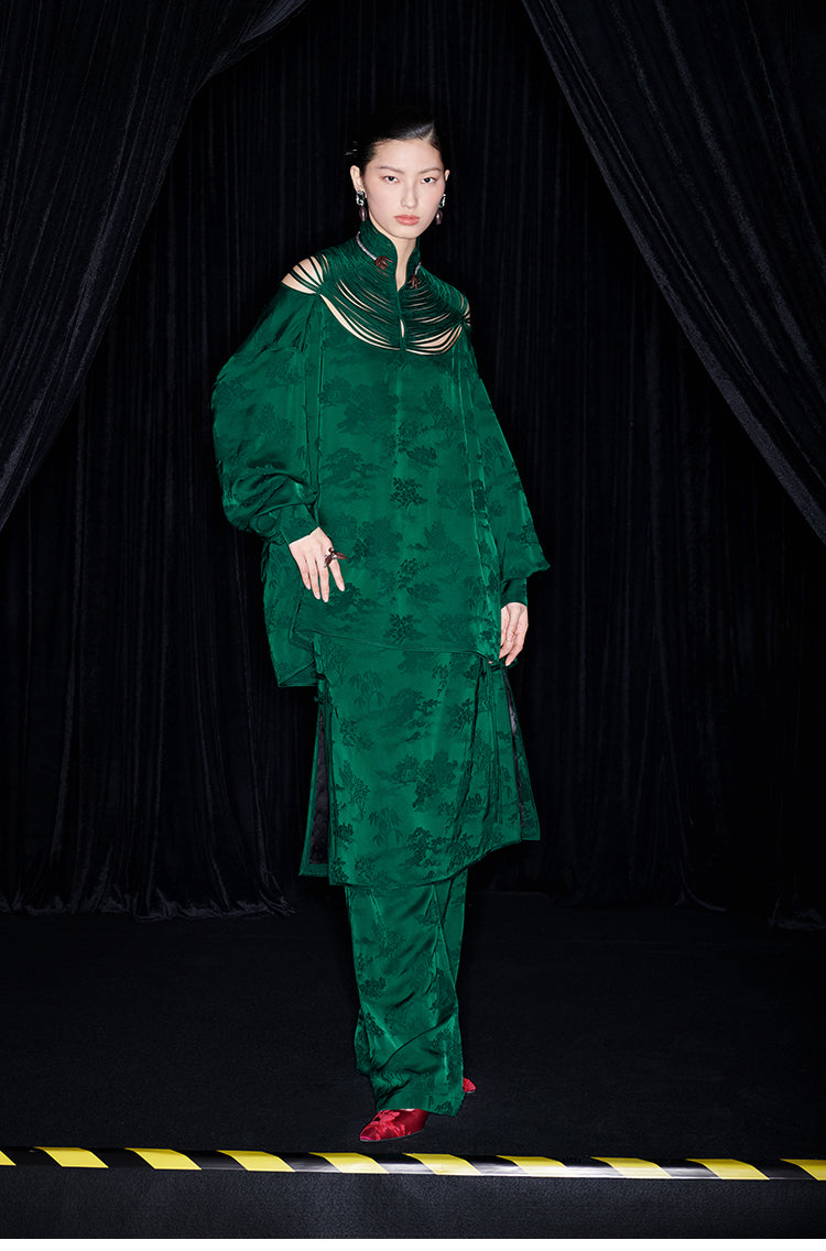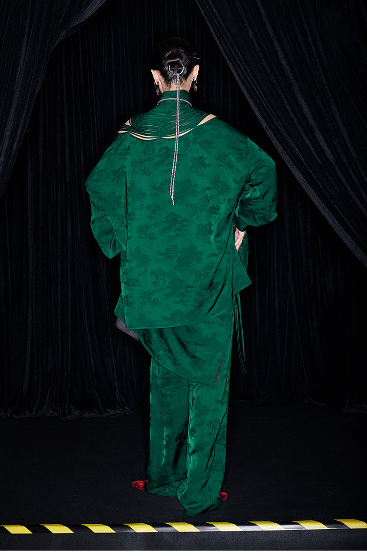 M essential Mackay designer Jacquard dense stand string neck top dress skirt pant set - Asaha
