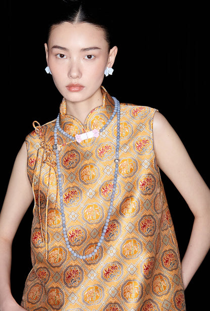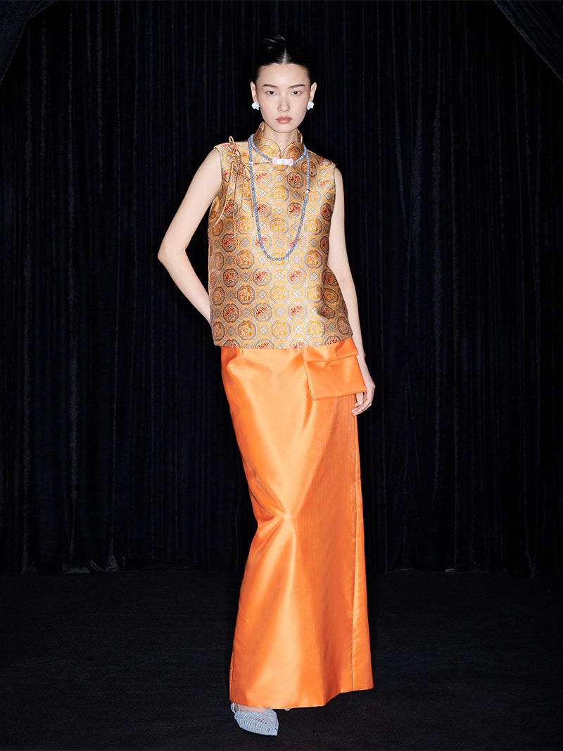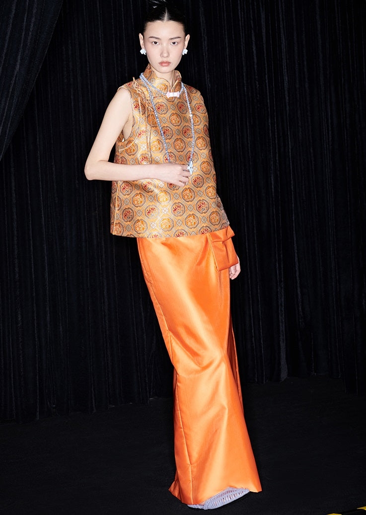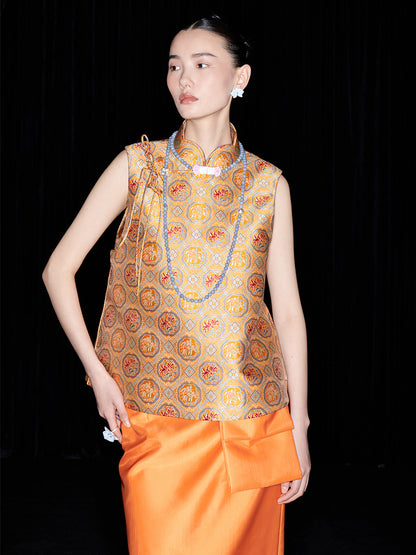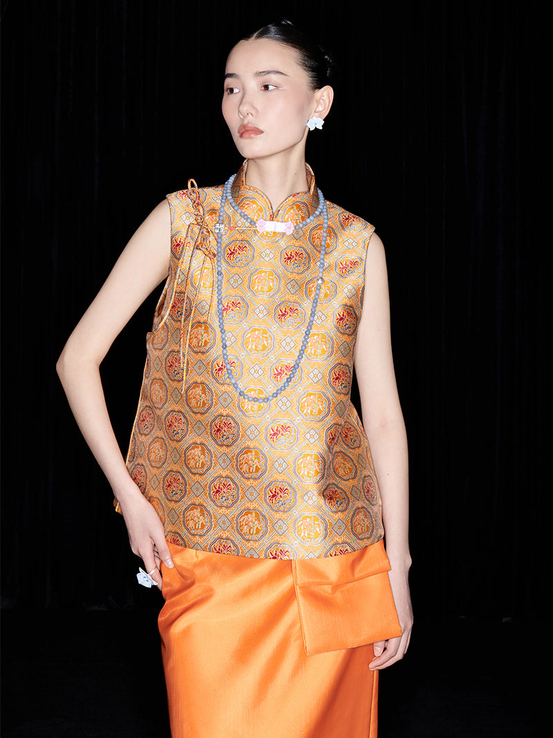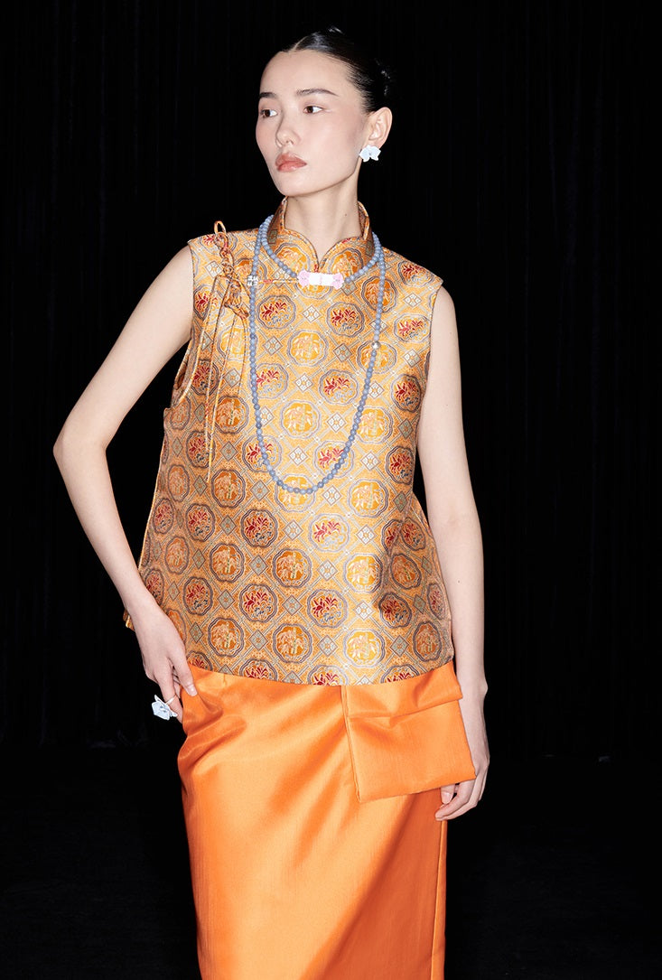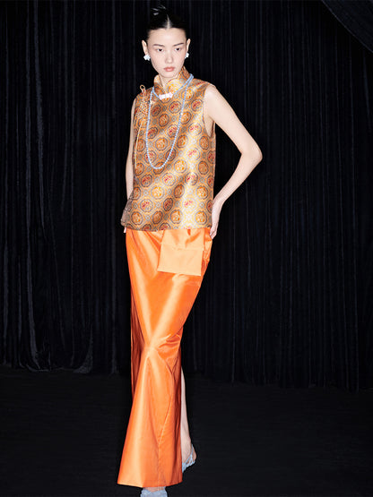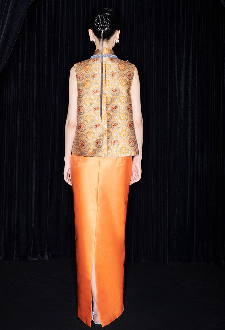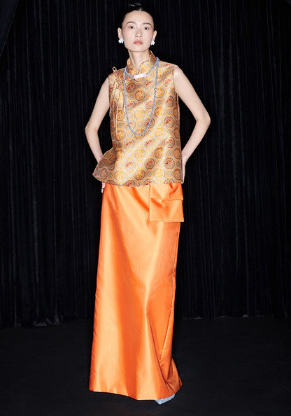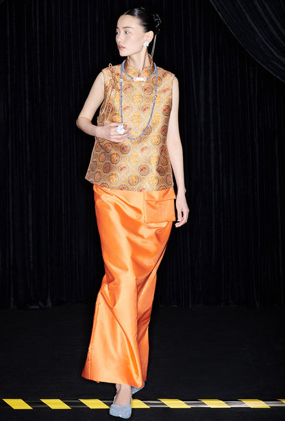 M essential Makai designer orange orchid bamboo four halo vest skirt - sans.