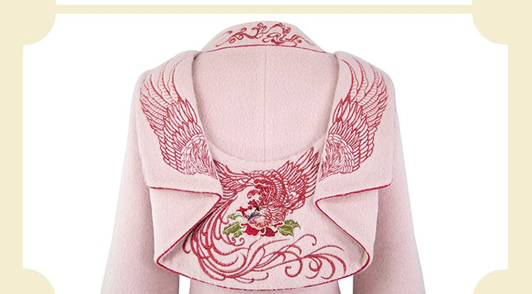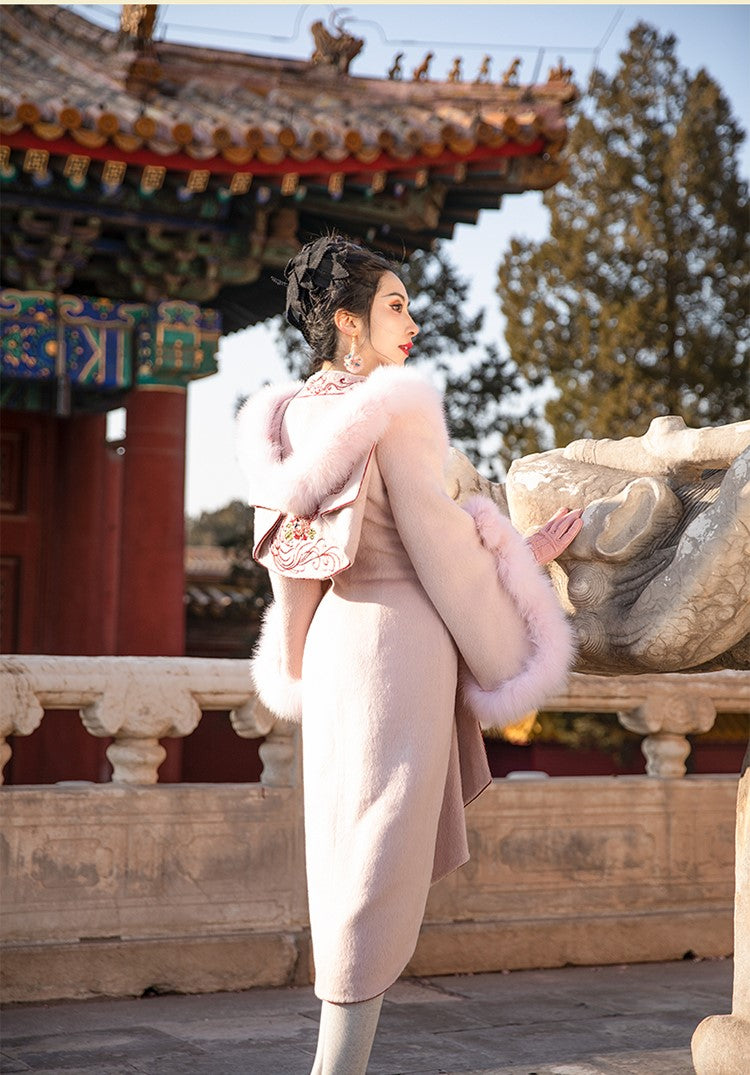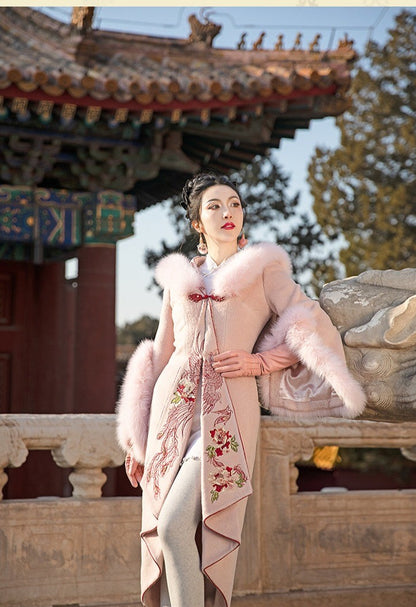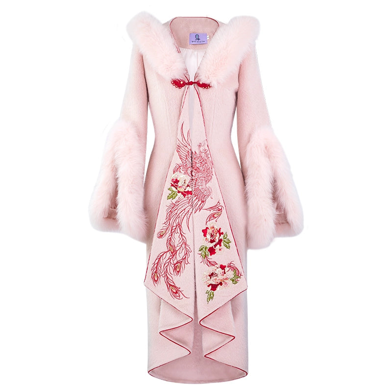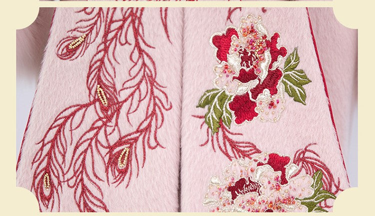 Introducing the Magic Q original design sense retro irregular heavy industry peony embroidered fox fur wool coat coat – the perfect garment for luxury-seeking fashionistas. Classically elegant with a trendy flair, this chic coat features a fashionable pattern that radiates beauty and fancy. Spun with colorful threads for a look of exclusive opulence, it's sure to become your favorite classic piece.