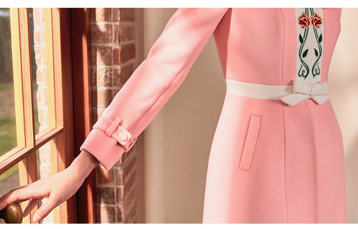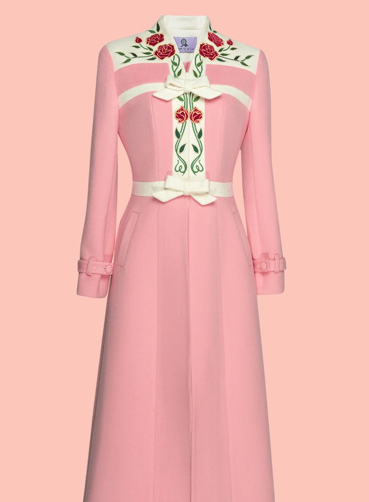 Take your style to the next level with Magic Q's original lamb wool coat, featuring a stunning rose-embroidered stand collar, a paneled bow, and adjustable sleeve loops for a perfectly elegant fit. Fall into the season in timelessly fashionable and glamorous style that is sure to turn heads and stay on trend.