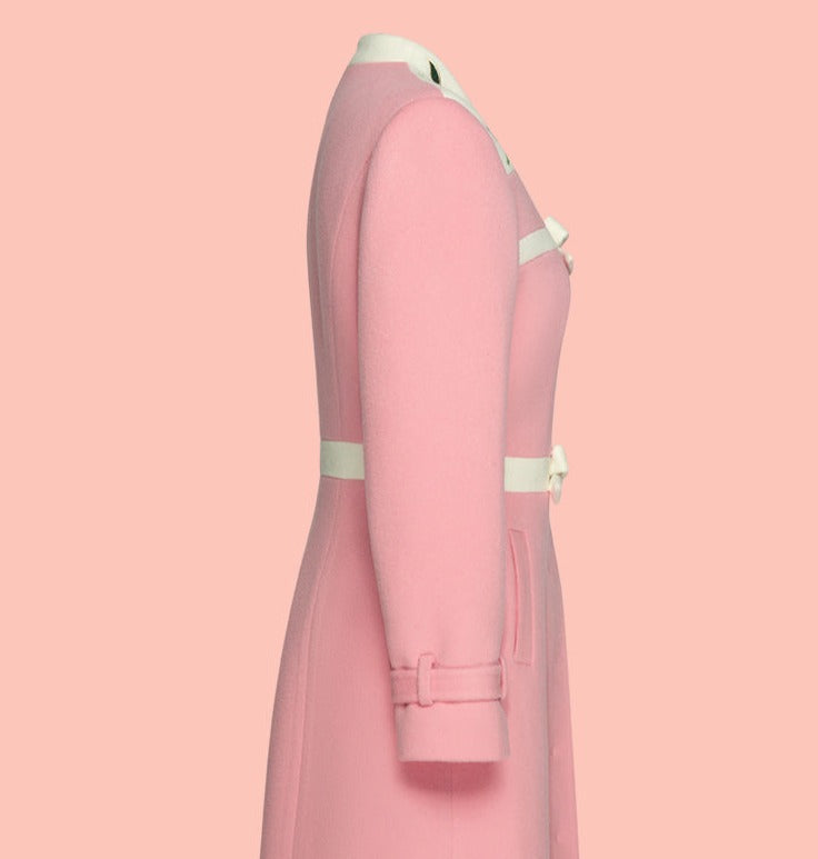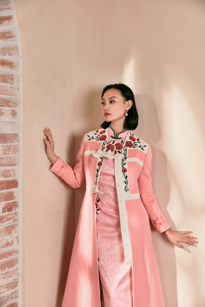Magic Q's rose-embroidered paneled bow adjustable sleeve loop lamb wool coat