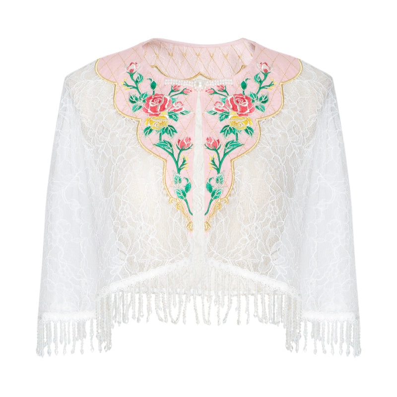 MagicQ Industries rose embroidered lace fringe shawl stand collar cloud shoulder patch embroidered beaded set