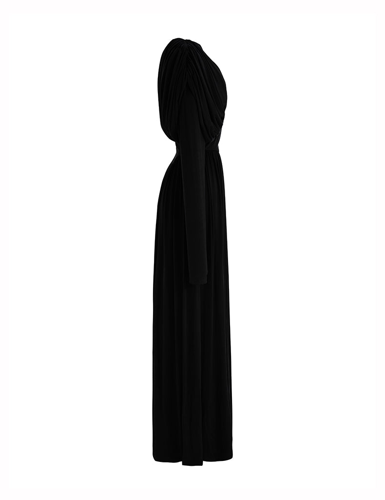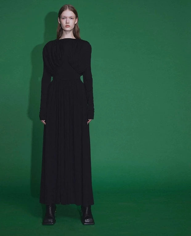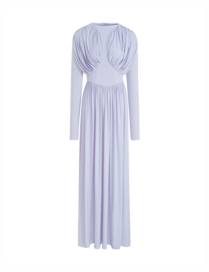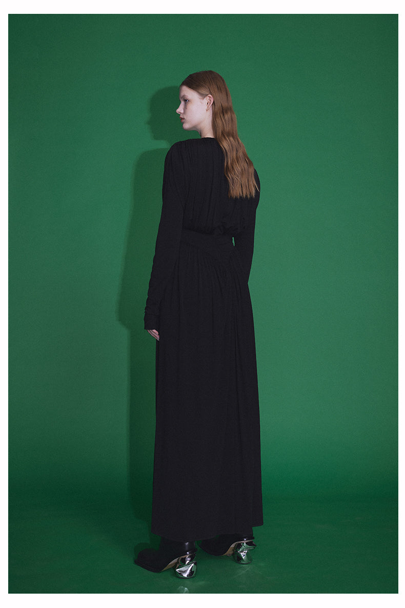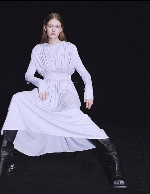 MAYALI crewneck split pleated midi length pleated dress - Leah