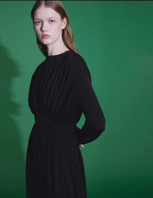 Look sophisticated yet casual in MAYALI's Leah dress. Crafted from luxurious, pleated fabric and cut into a flattering midi length, this timeless piece features stylish long sleeves and a delicate round neck for a mature, fashionable look. Perfect for fall, this simple yet chic, comfy dress is ideal for any occasion.