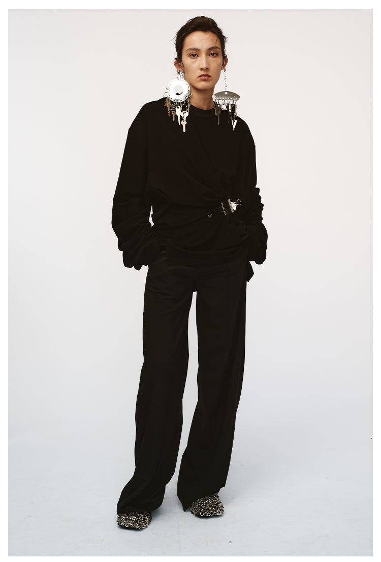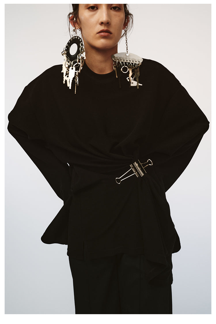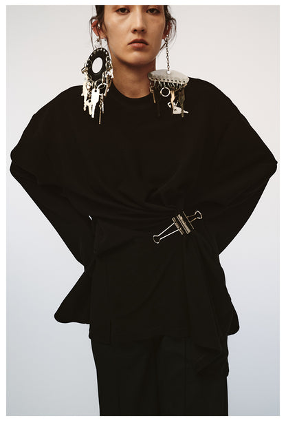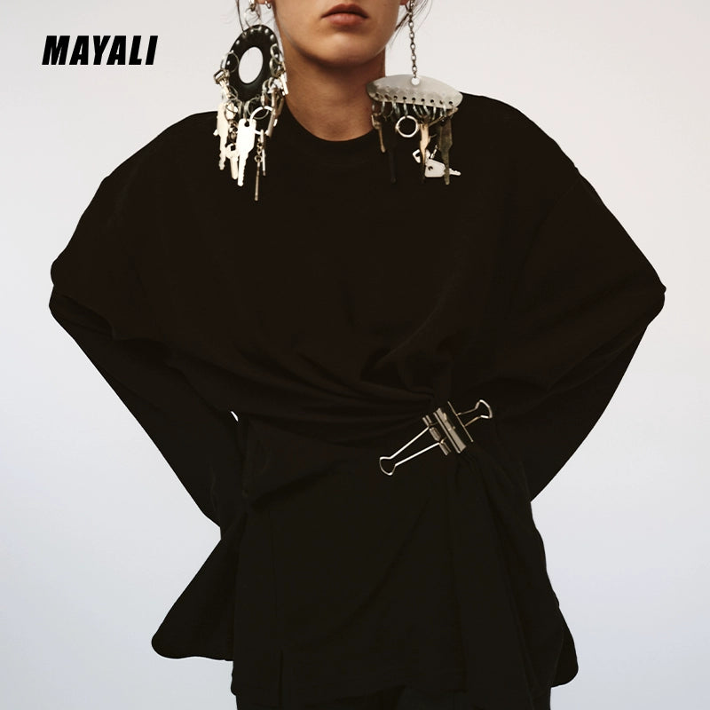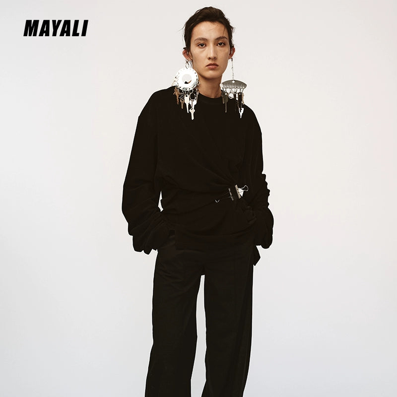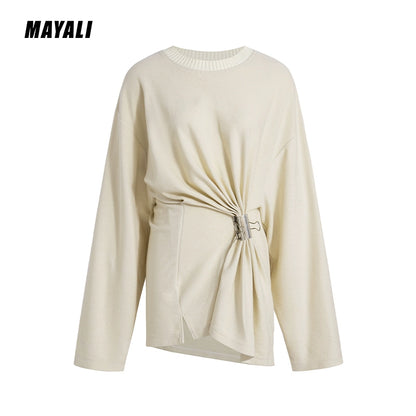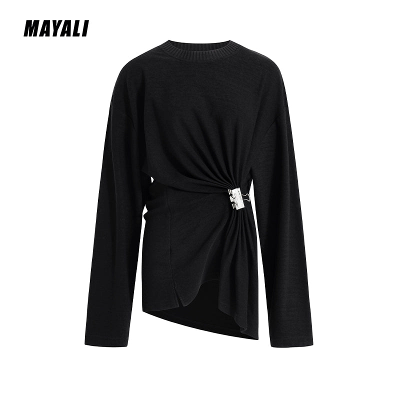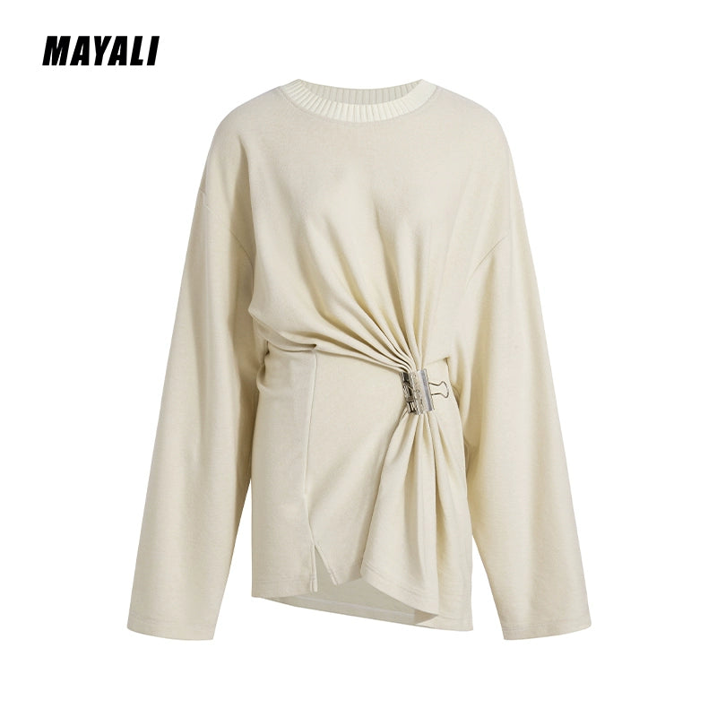 MAYALI fall crewneck deconstructs pinched pleated sweatshirt - Aliok