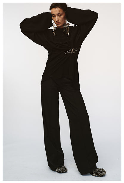 Discover the Aliok Crewneck Deconstructed Pinched Pleated Sweatshirt for Fall and experience exquisite craftsmanship with a unique style. Its comfortable and chic silhouette is effortlessly stylish, while its bold palette of black and beige adds a dashing touch to your seasonal wardrobe. Accentuate any look with this timeless piece and stand out in a crowd with its simple yet stylish design.