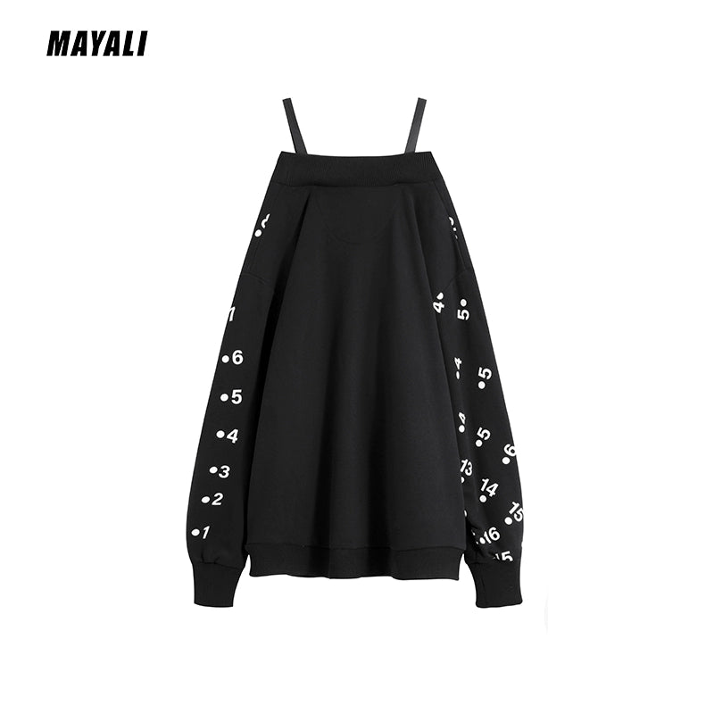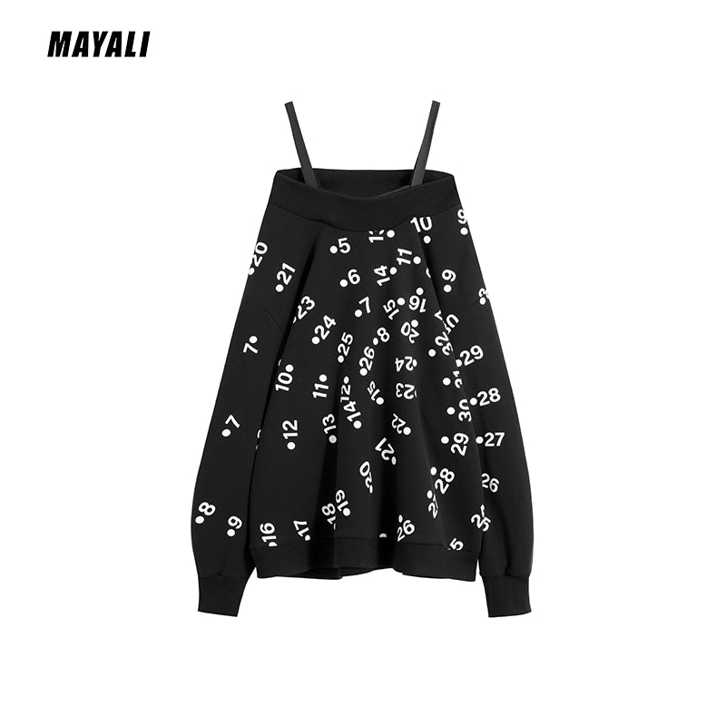 MAYALI Fall/Winter Digital Print Bandeau Designer Loose Pair Sweatshirt - Caeui