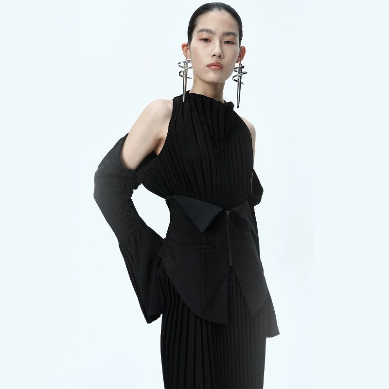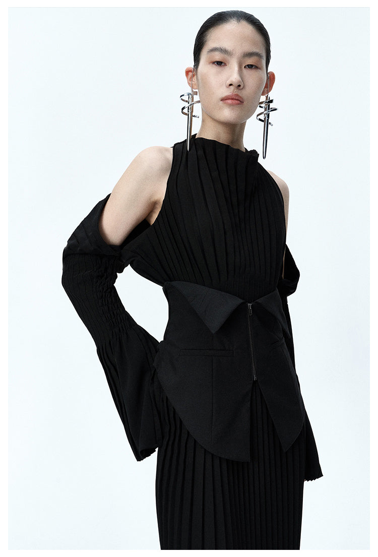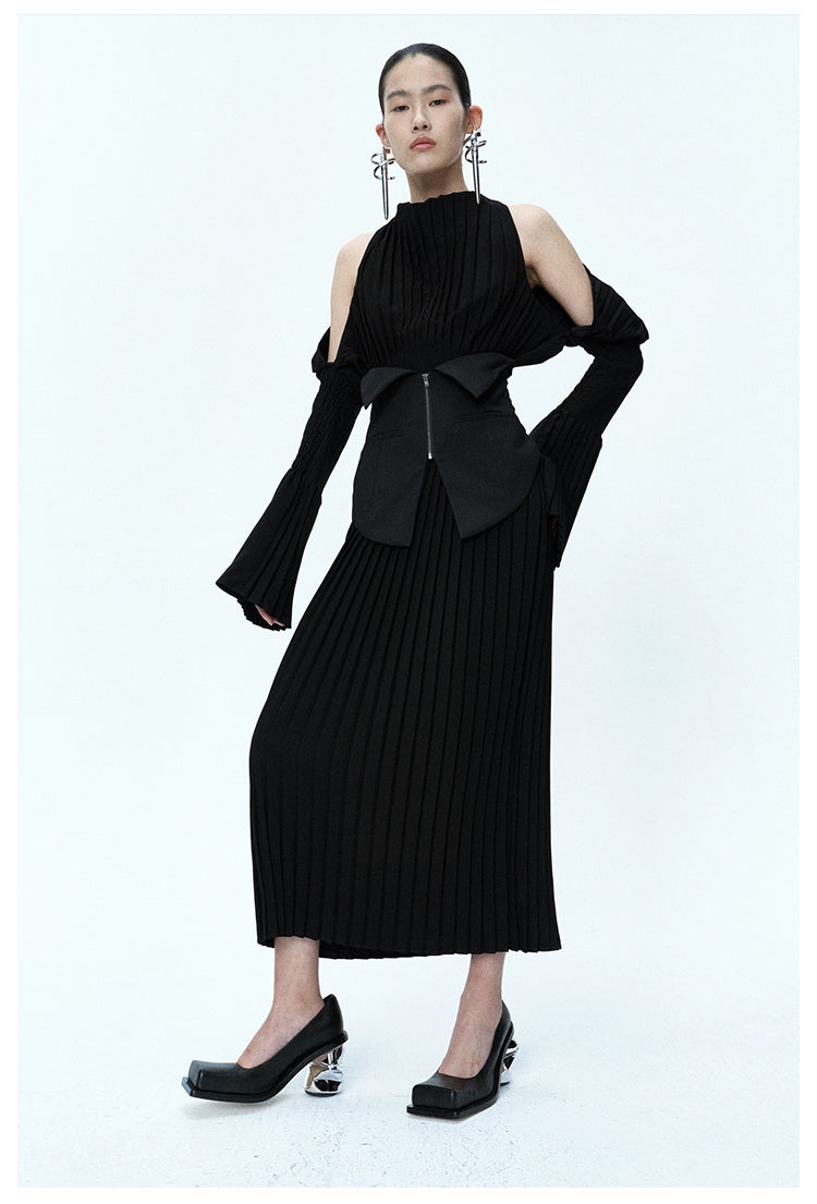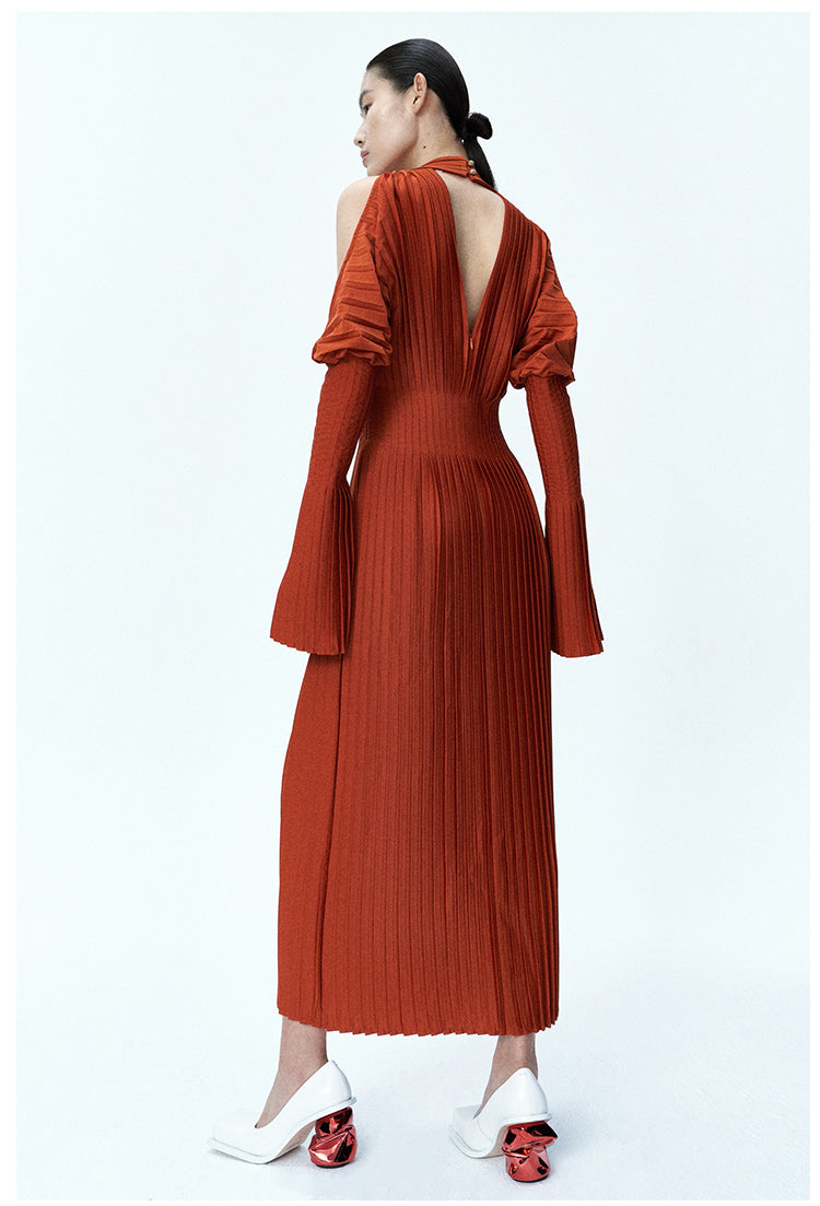 MAYALI FALL/WINTER 3d off the shoulder pressed pleat luxury dress - Mmini