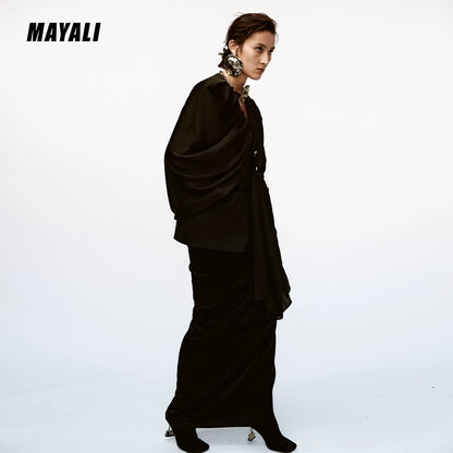 Experience luxury with MAYALI's Iaryk suit, crafted in a loose and layered design for maximum chicness. Fall in love with its subtle black hue and long sleeves, perfect for any special or everyday occasion. Imbue your style with a touch of elegance and sophistication - and be the dashing center of attention!
