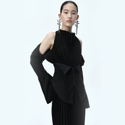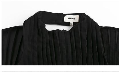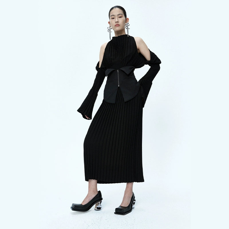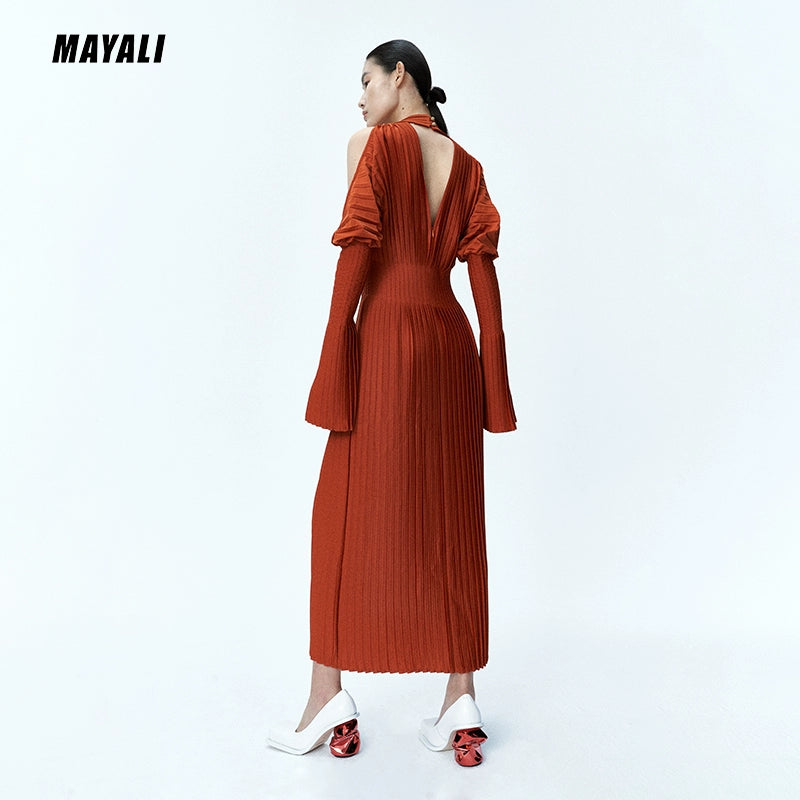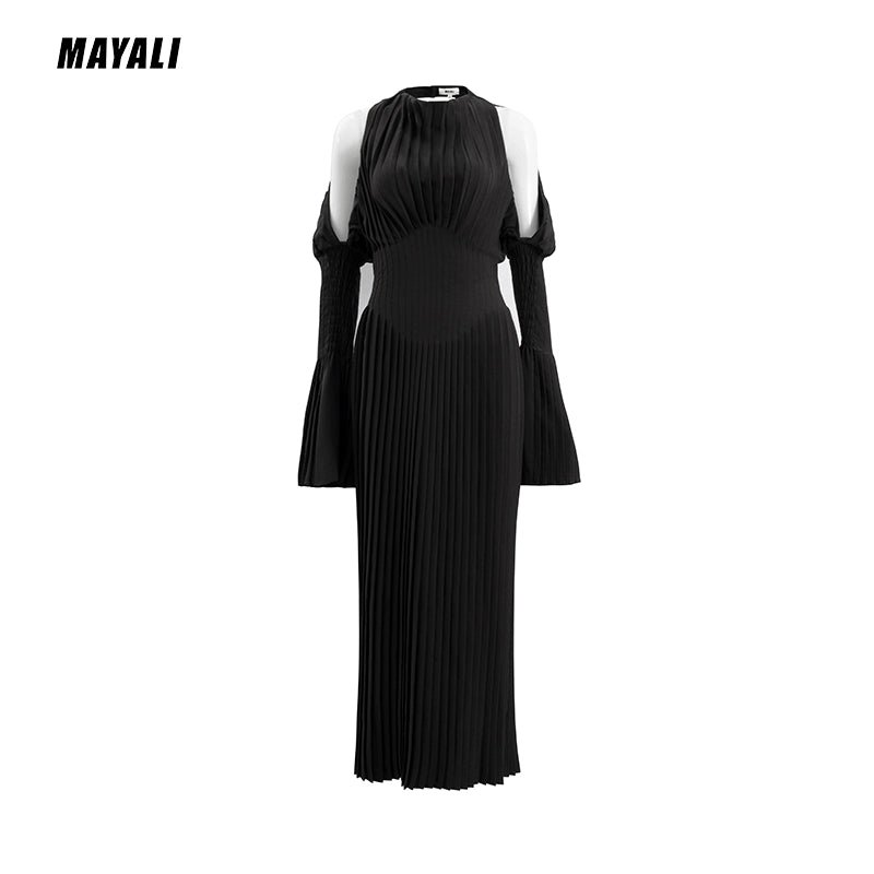 MAYALI FALL/WINTER womens three dimensional off shoulder pleat midi open back dress - Kieju