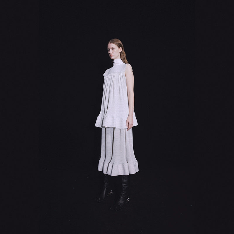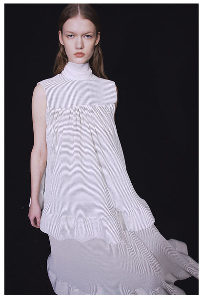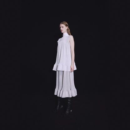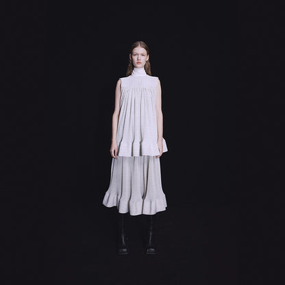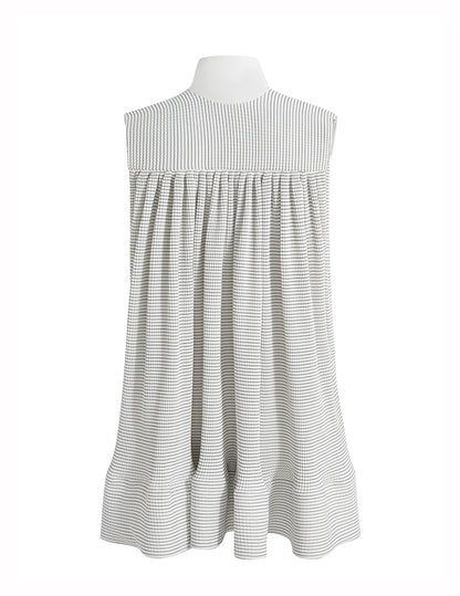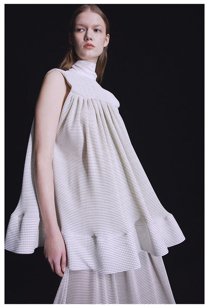 MAYALI sleeveless pleated crinkled half-turtleneck plaid panels loose skirt top - Lilian