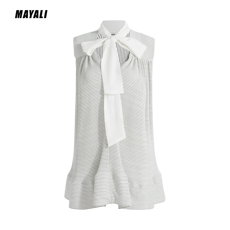 Achieve an elegant and glamorous look this fall with MAYALI's sleeveless, bract, pleated, crinkled, half-turtleneck top featuring plaid panels for a slim, loose fit. This sophisticated design is sure to make you the envy of the room, while its fashionable and classic style ensures you'll be dashingly chic.