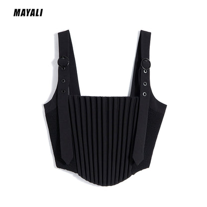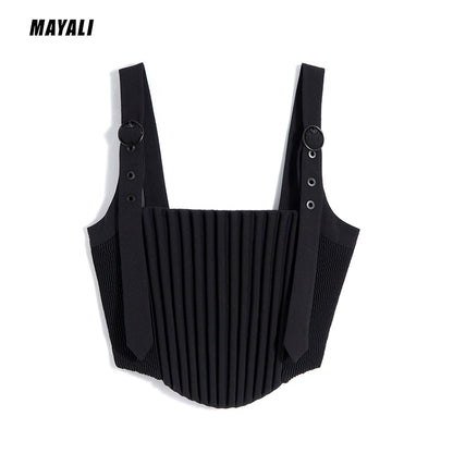Ensure you are the centre of attention with this MAYALI Spine-Embroidered Adjustable Shoulder Strap Bustier Vest Crop Top. This gorgeous, feminine top is perfect for a night out, featuring adjustable straps, a sexy and dashing crochet spine detail, and a beautiful bustier fit. This adjustable, sophisticated shoulder strap vest is sure to be the standout of any outfit.